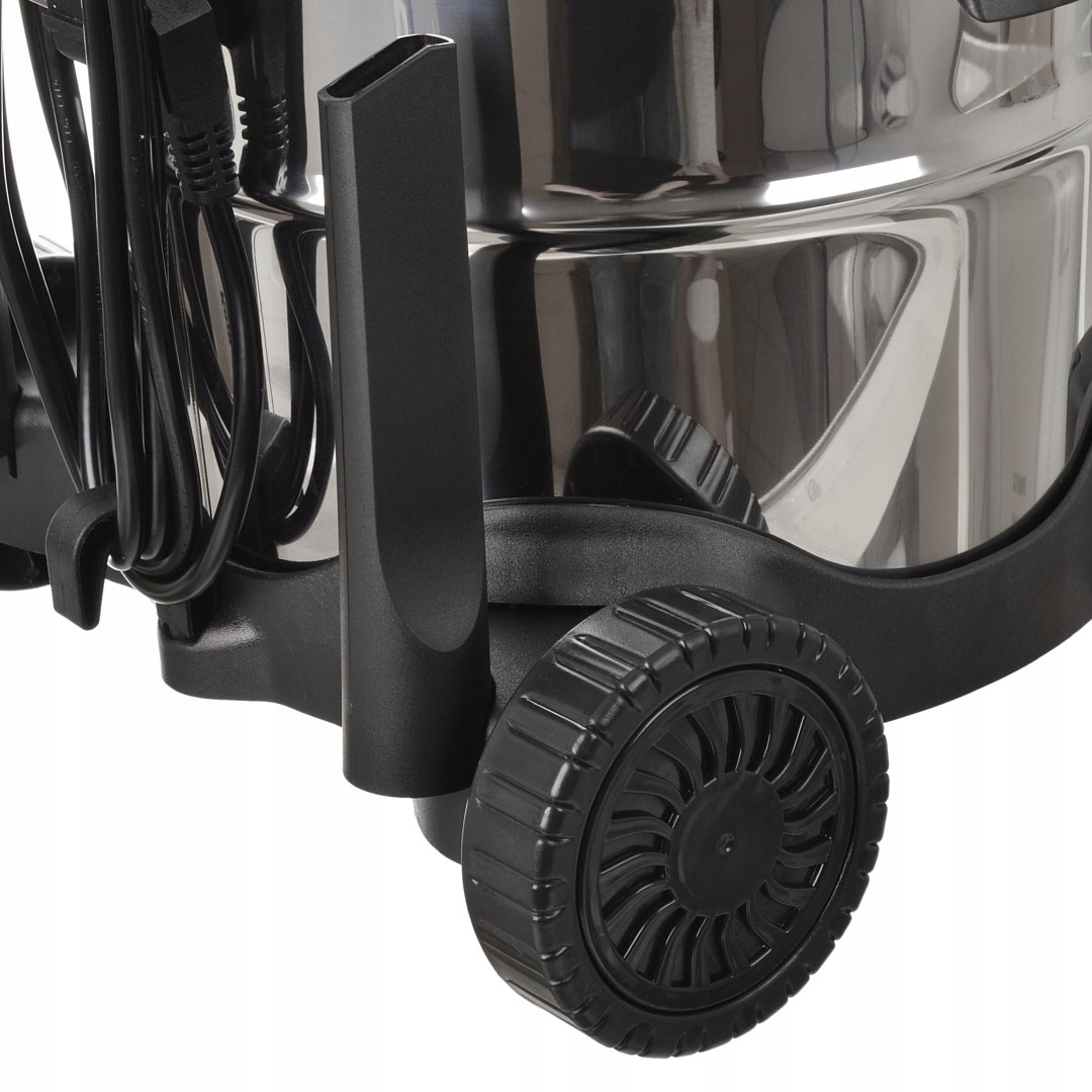 Влажная уборка пылесосом. Функция извлечения жидкости позволит вам легко собирать воду из пылесоса. ванные комнаты, автомастерские, подвалы и т. д. Пылесос имеет функцию AQUA STOP, которая защищает турбину от всасывания слишком большого количества воды в бак. Кроме того, он оснащен сливной пробкой, позволяющей легко слить воду без необходимости «поднимать» весь пылесос.
