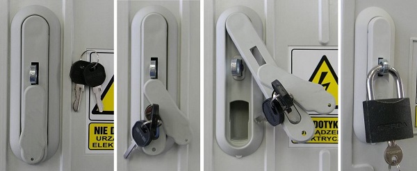 (ручка шкафа также приспособленадля закрытия дополнительным навесным замком)