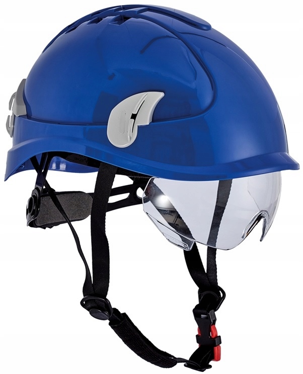 Шлем, строительная каска синегос выдвижными очками и 4-точечным подбородочным ремнем