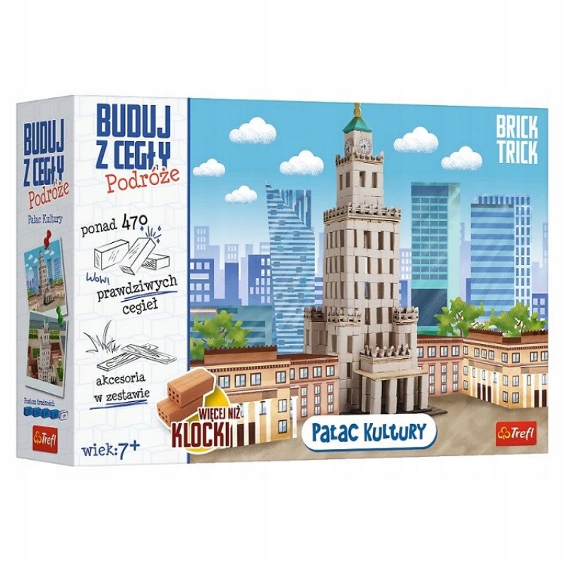Дворец культуры и науки, безусловно, самое узнаваемое сооружение в Польше! Благодаря серии Brick Trick Travels у вас появится возможность построить точную копию здания с нуля! Яркие натуральные кирпичи, обожженные при температуре 1000 градусов по Цельсию, прекрасно отражают характер этого монументального здания. Более 470 настоящих кубиков доставят массу удовольствия. А еще настоящие доски и картонные элементы, из которых можно собрать, среди прочего: крыша, часы и балюстрады завершают конструкцию. В собранном виде дворец имеет высоту более 40 см и увенчан характерным шпилем. В наборе целых 96 натуральных ингредиентов!