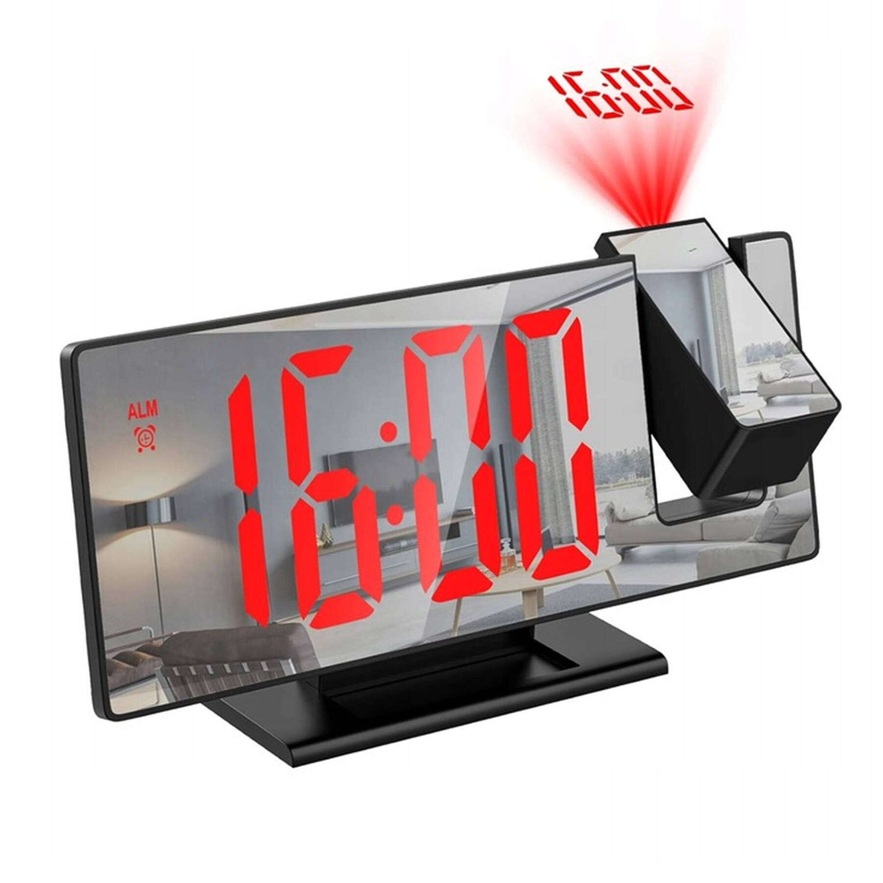 BUDZIK ZEGAR ELEKTRONICZNY GŁOŚNY Z PROJEKTOREM LED STOJĄCY CYFROWY DATA