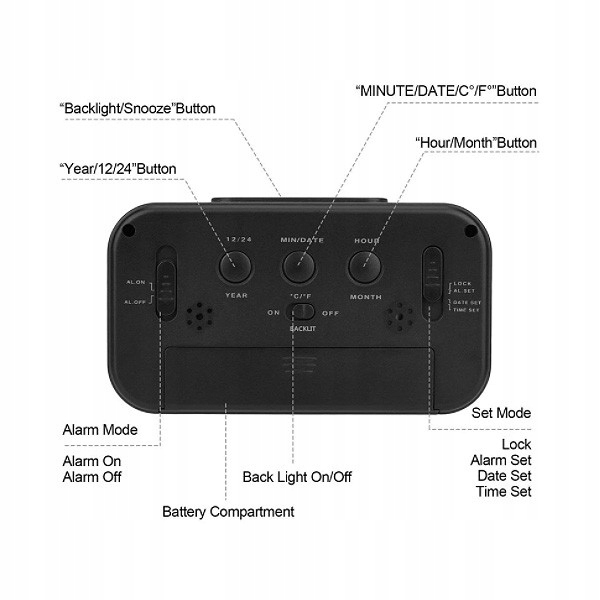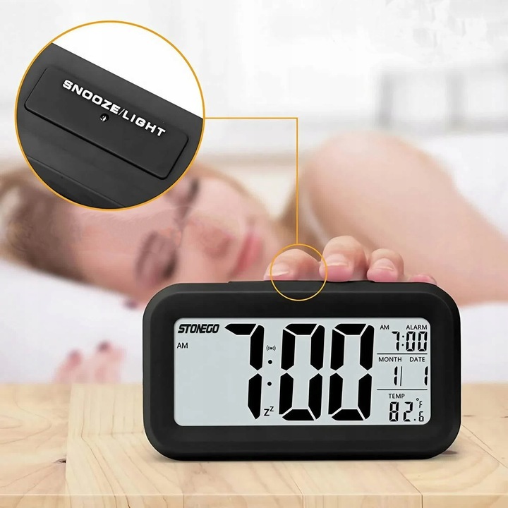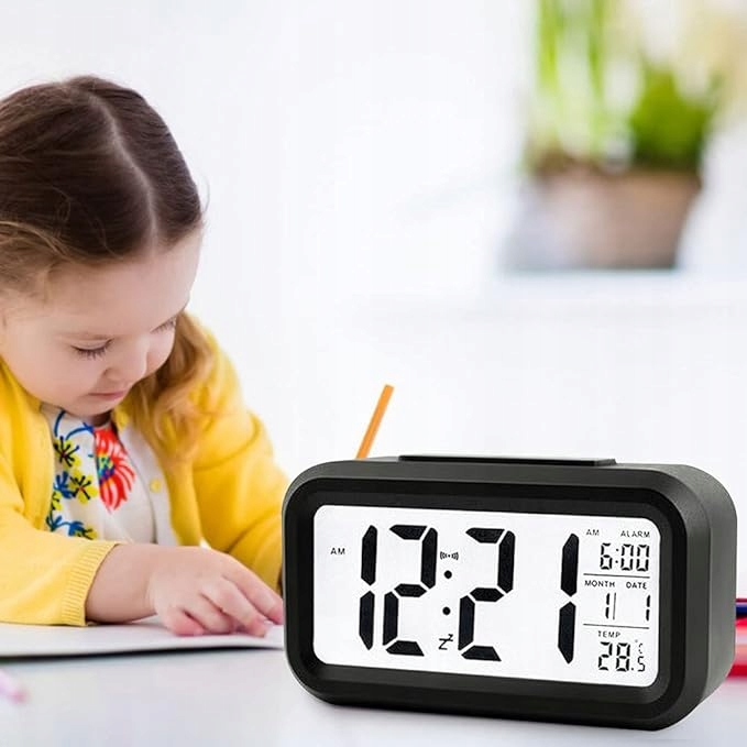 BUDZIK ZEGAREK ELEKTRONICZNY LED CYFROWY STOJĄCY TERMOMETR ALARM DATA