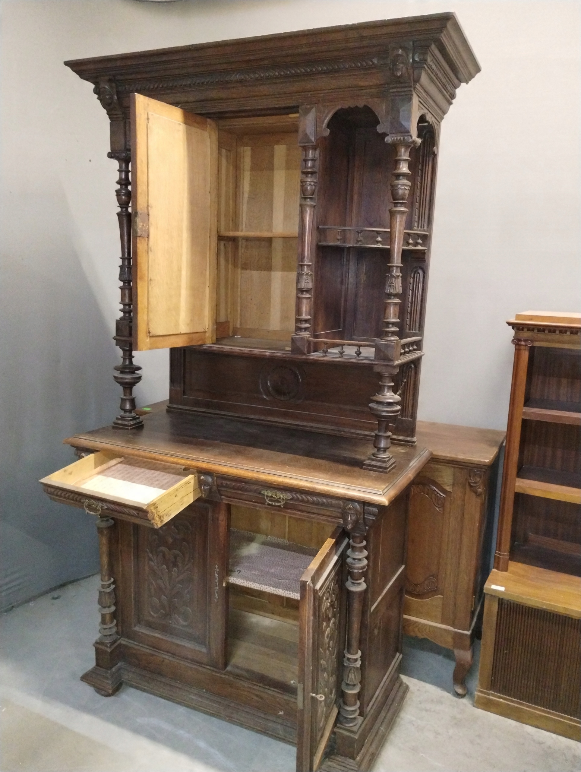 Буфет дубовий, вітраж еклектичний, 19 століття, багато різьби по дереву