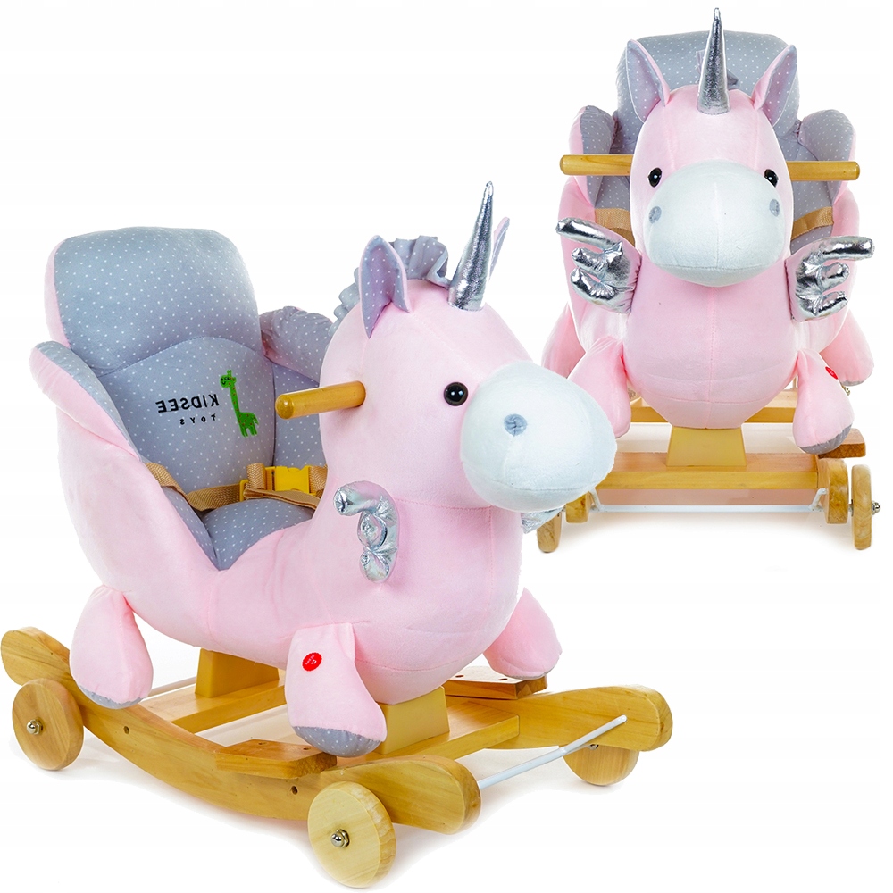 Bujak jeździk koń na biegunach z rączką 3w1 Kidsee interaktywny jednorożec
