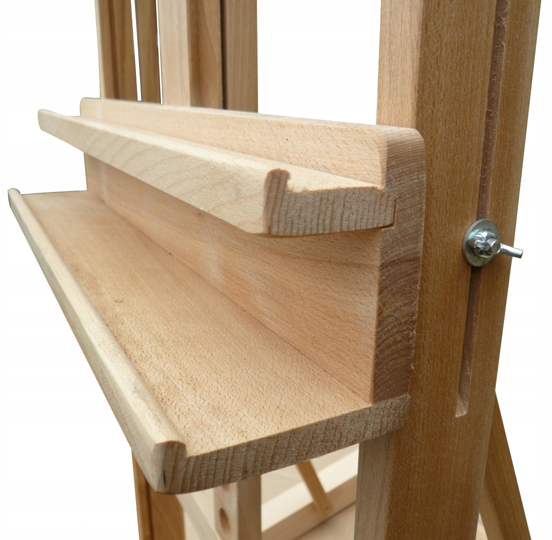 Мольберт имеет чрезвычайно практичную нижнюю полку, оборудованную отдельным местом для хранения кистей, красок и всего остального, что может пригодиться во время рисования.