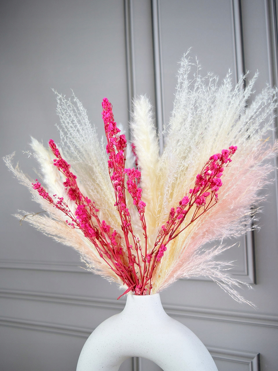 Высушенные растения в идеале являются решением для вашего интерьера! Они не требуют воды или какого -либо особого ухода. Они будут долгое время украшения вашего дома, офиса или рабочего места. А событие - мотели Бохо и Бали в настоящее время находятся на многих мероприятиях, пампас идеально подходит для таких договоренностей.