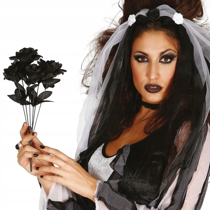 Bukiet Czarnych Róż Sztuczna Róża Kwiaty Halloween Dekoracja 35cm