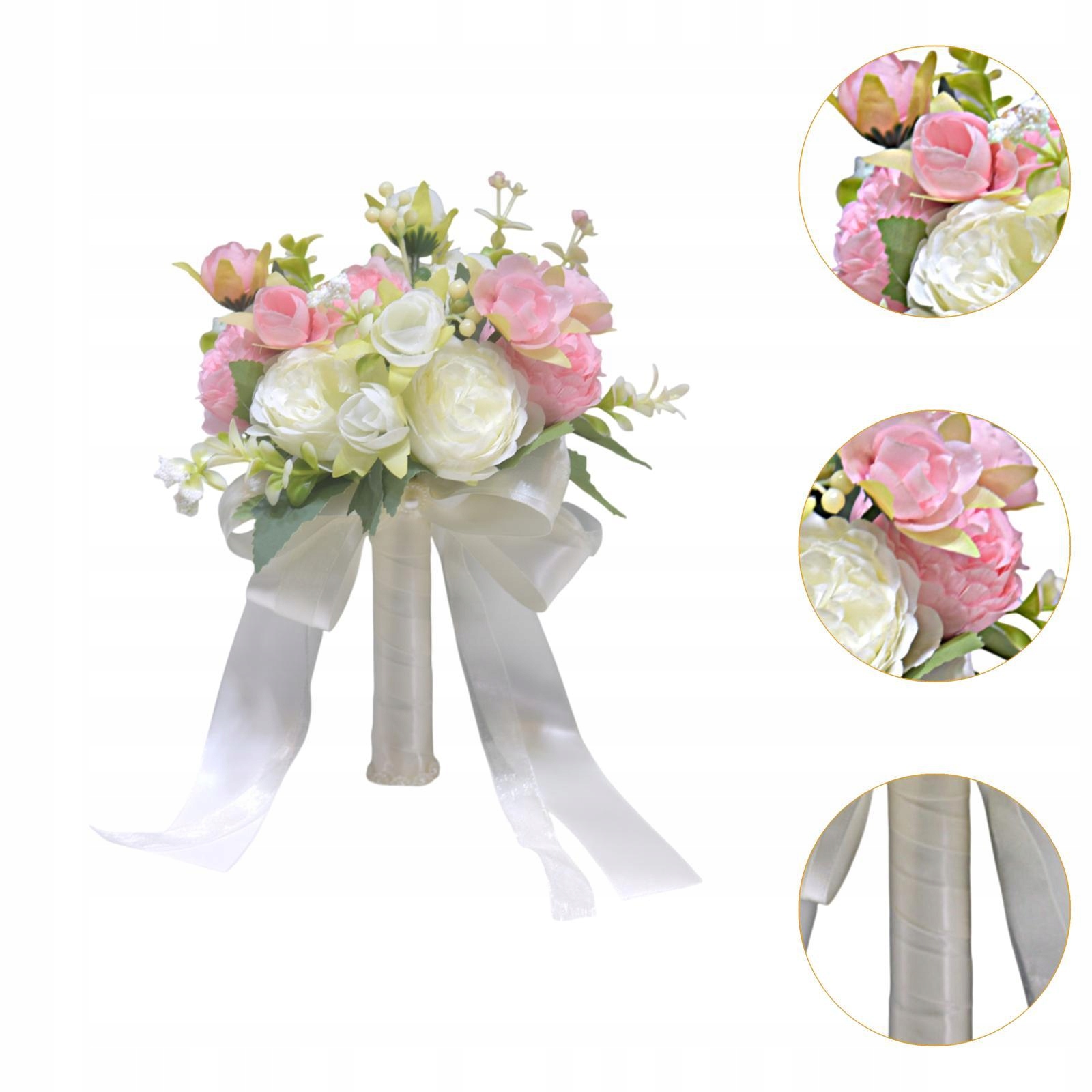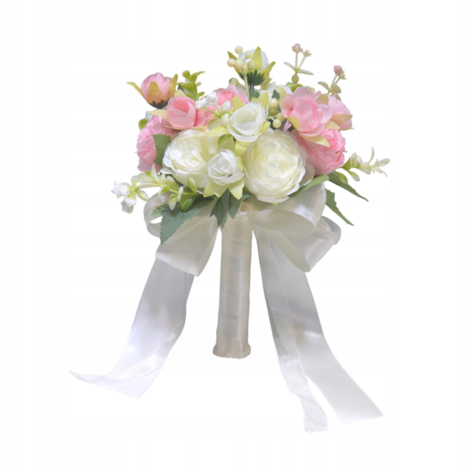 [Свадебный букет для молодоженов]: Этот искусственный букет состоит из роз и других цветов, украшенный декоративными лентами. Это создает очаровательную, классическую и элегантную атмосферу, которая отлично подходит для свадебной