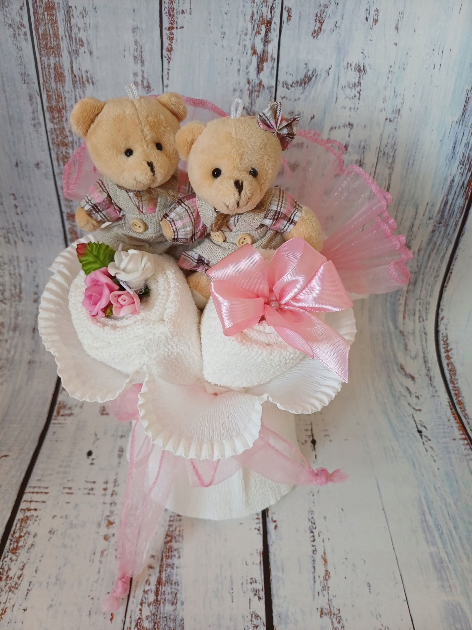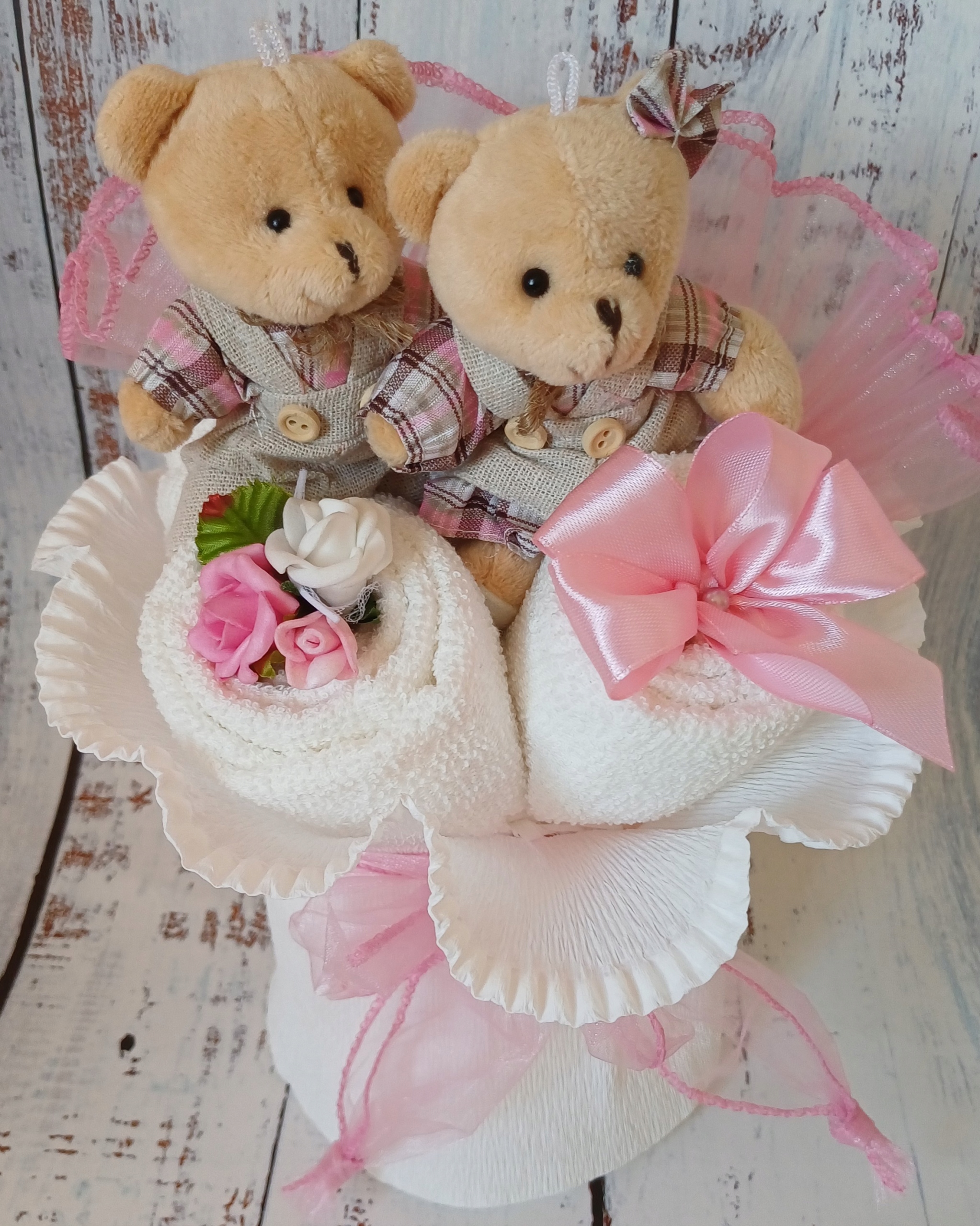 Букет полотенц с парой очаровательных плюшевых мишек h1>