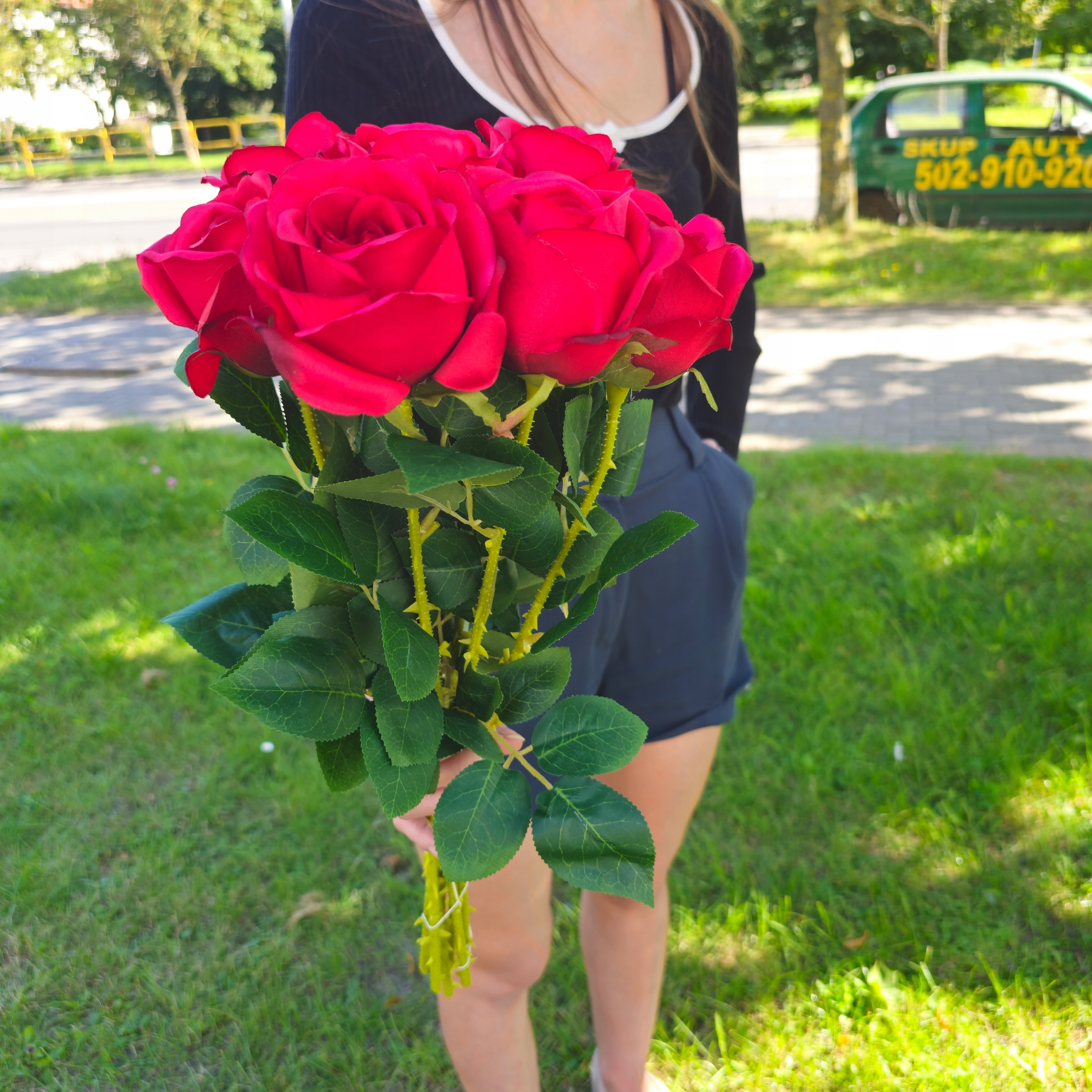 БУКЕТ ИЗ ИСКУССТВЕННЫХ КРАСНЫХ РОЗ ПРЕМИУМ (диаметр 10 см!) - 8 ВЕТВЕЙ.