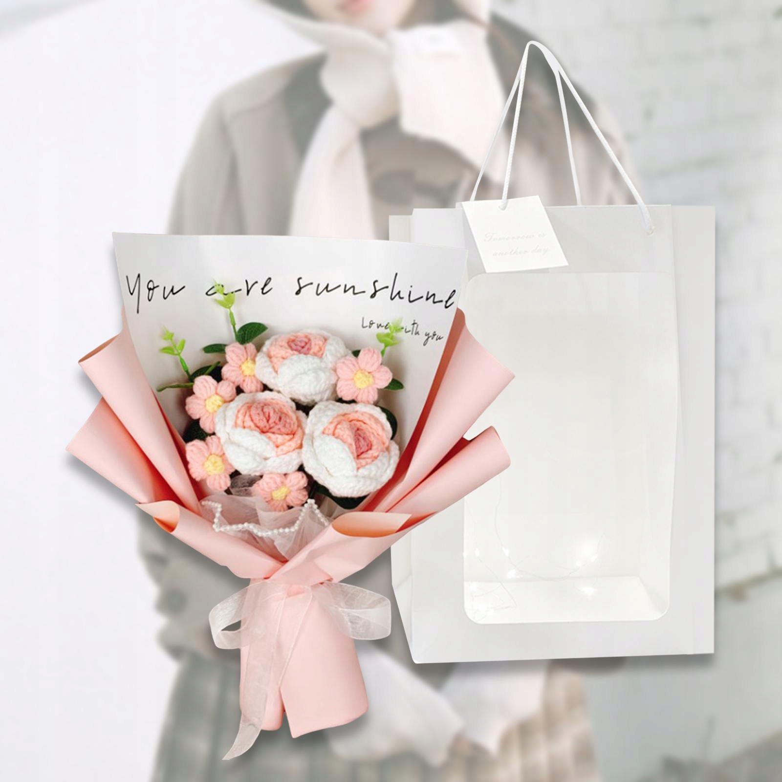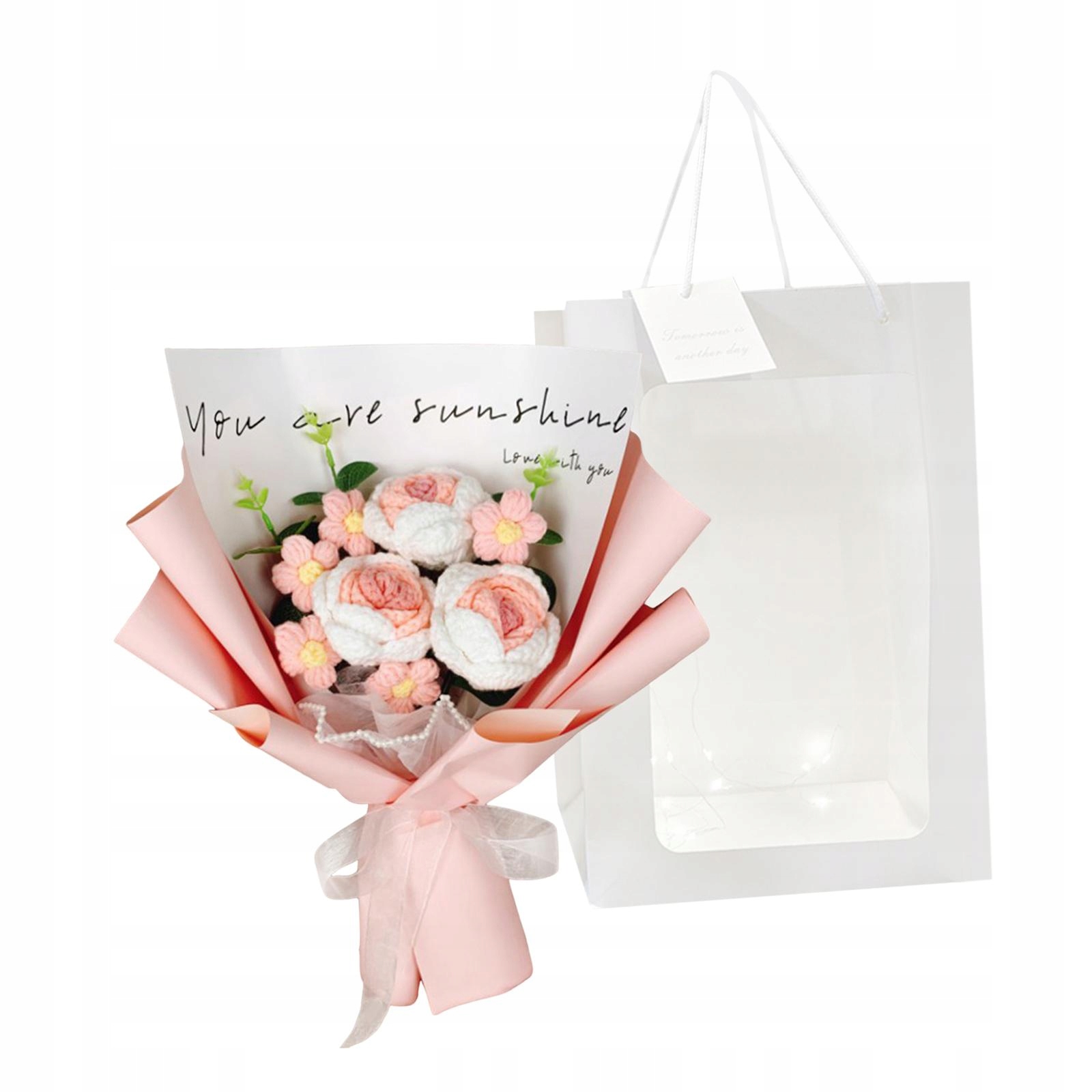 [Вязаный крючком букет]: этот красивый искусственный плетеный букет нежный, яркий и элегантный, его можно использовать в качестве свадебного или праздничного букета.