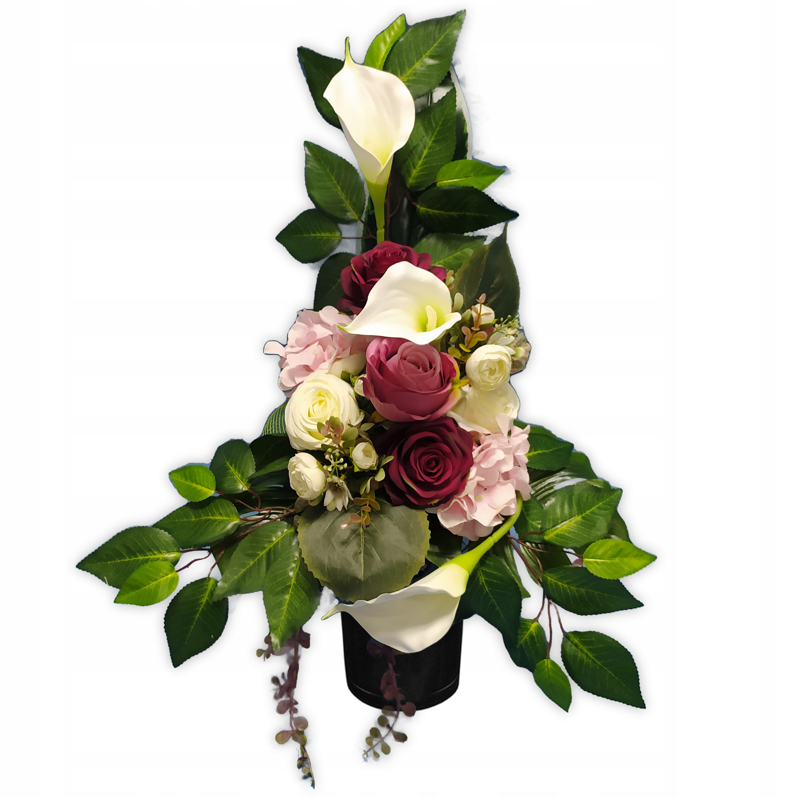 Красивый стоячий (вытянутый) букет на могилу из искусственных цветов. Мы сами тщательно составляем наши композиции, благодаря чему украшения уникальны и в жизни смотрятся еще лучше.