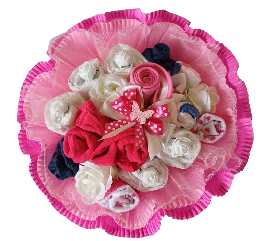 - это оригинальный подарок для первого визита, крещения или другого случая. Компании George или F & F> из деликатного, хорошего хлопка, 5 кусочков подгузников Pampers Premium и тонкие искусственные розы. P> 62см (0-3 месяца) и памперс № 1 (2-5 кг)