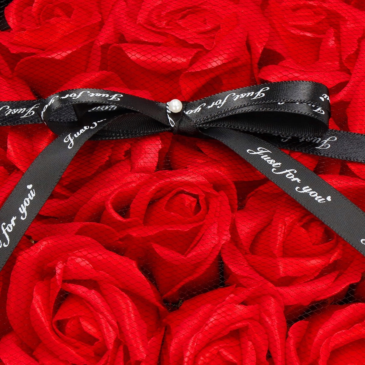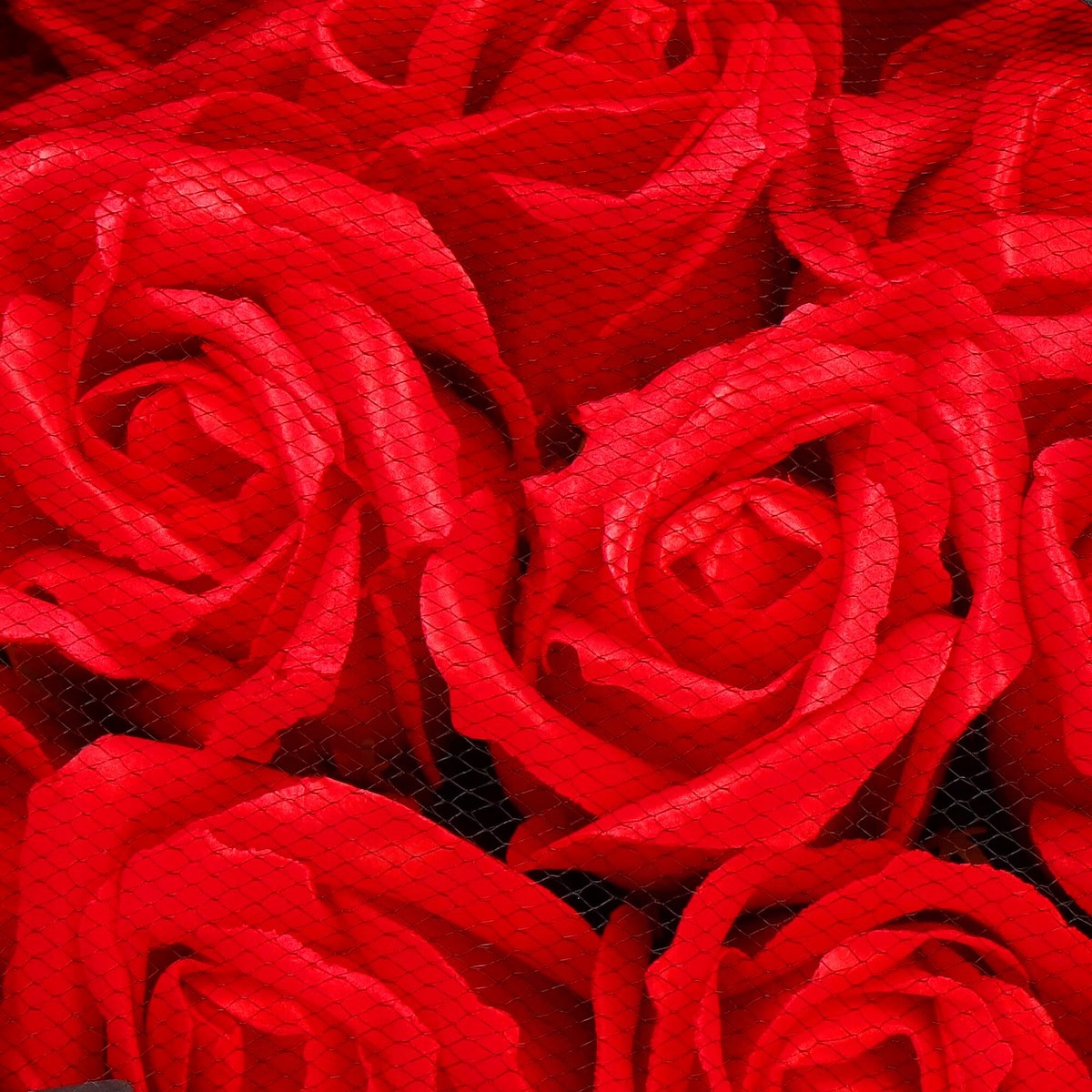 - Тип: букет красный мыло с розами в черной декоративной бумаге, обернутое тюлем
