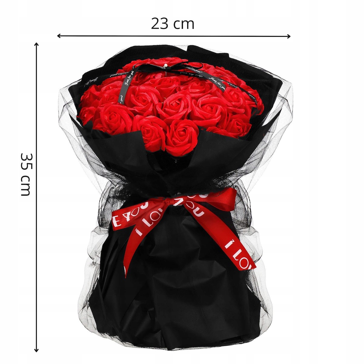 - Ширина верхней части букета: около 23 см.