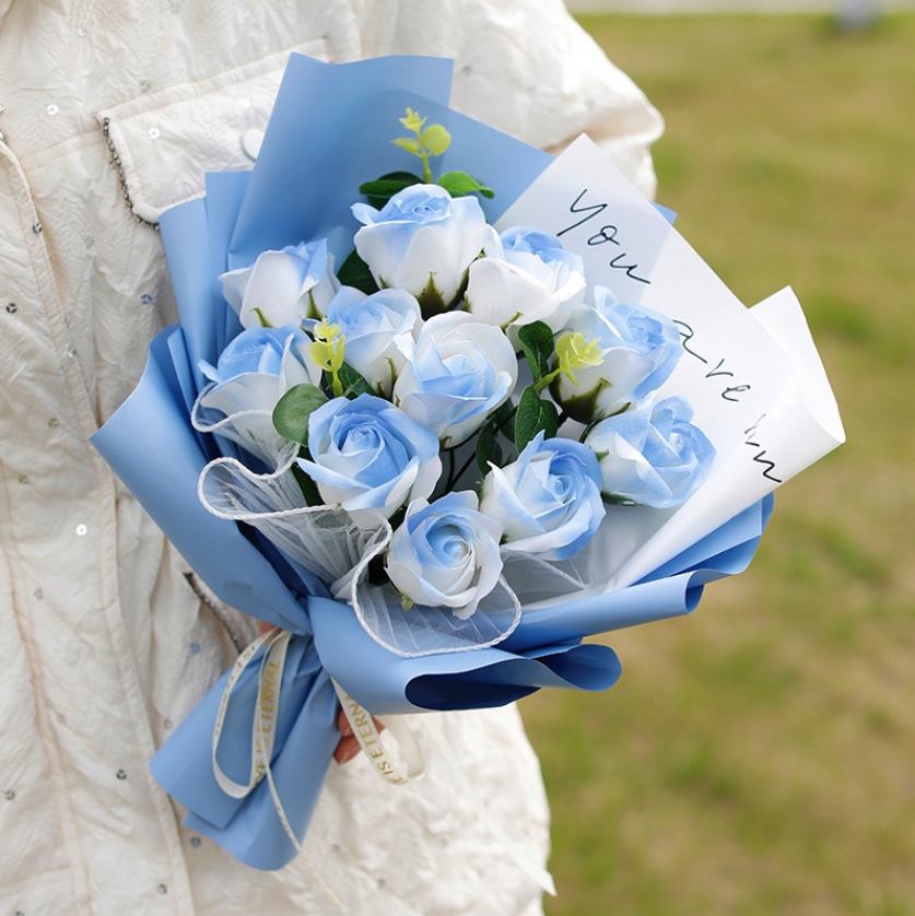 Эксклюзивный букет мыльный блинчик show в элегантном сине -белом оттенке - идеальный выбор для людей, которые ценят красоту и долговечность.