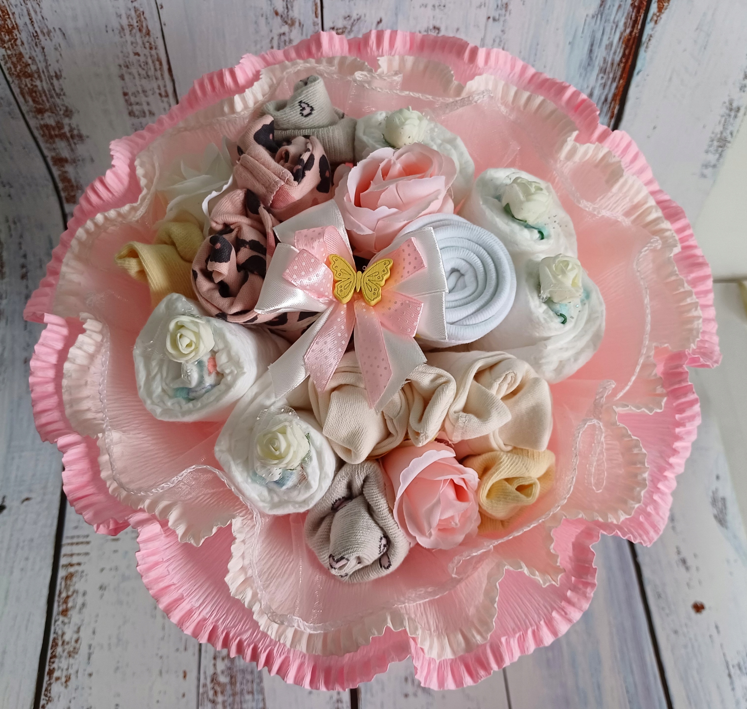 Букет из одежды и подгузников 68см Подарок на Крещение