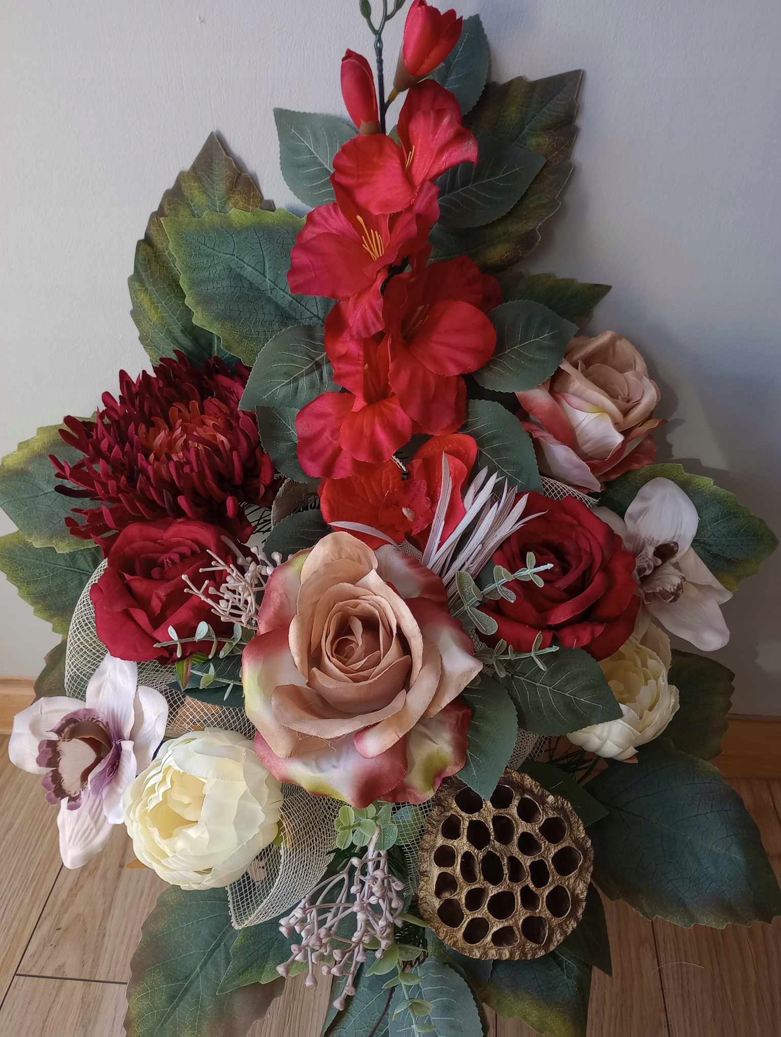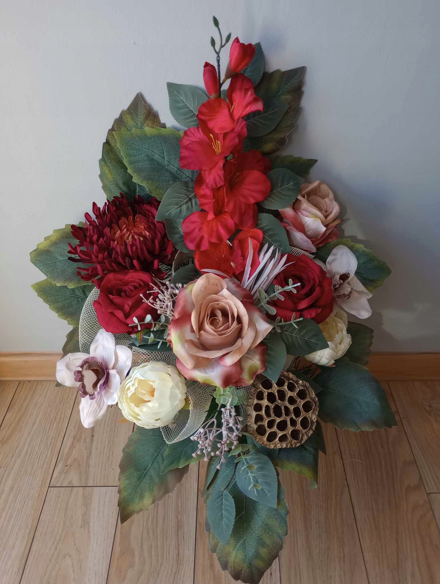Красивый букет для искусственной могилы цветов, композиция для вазы на универсальной бутылке с возможностью выбора посвящений для бабушки/дедушки/матери/папы (все доступные варианты видны на последнем фото). Мы сами делаем свои композиции, благодаря тому, что тростники являются уникальными, и они выглядят еще красивее вживую :) В вазу! Универсальная бутылка. Композиция с вазой имеет высоту около 60 см и шириной 45 см.