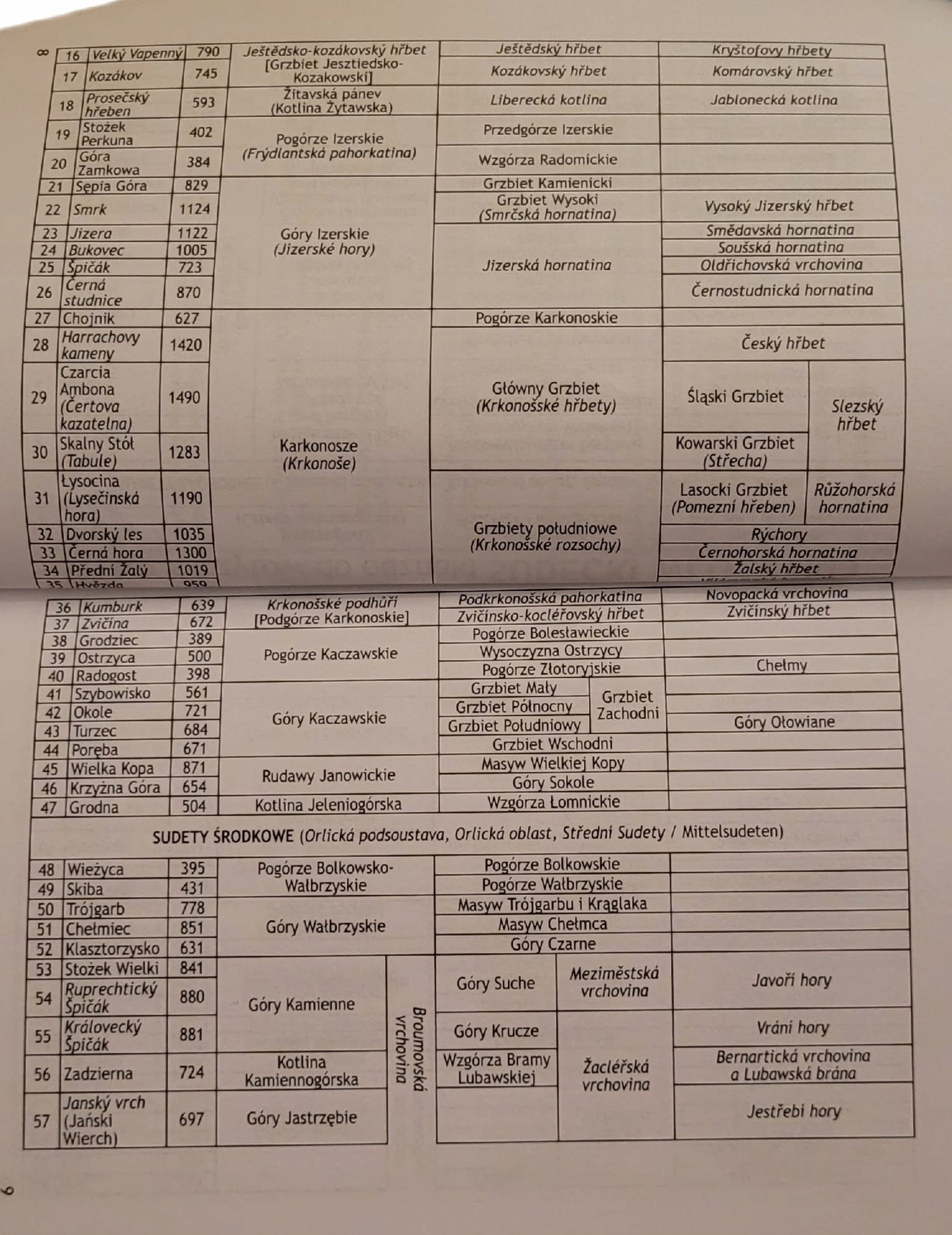 Ниже приведен список из 100 судетских вершин.