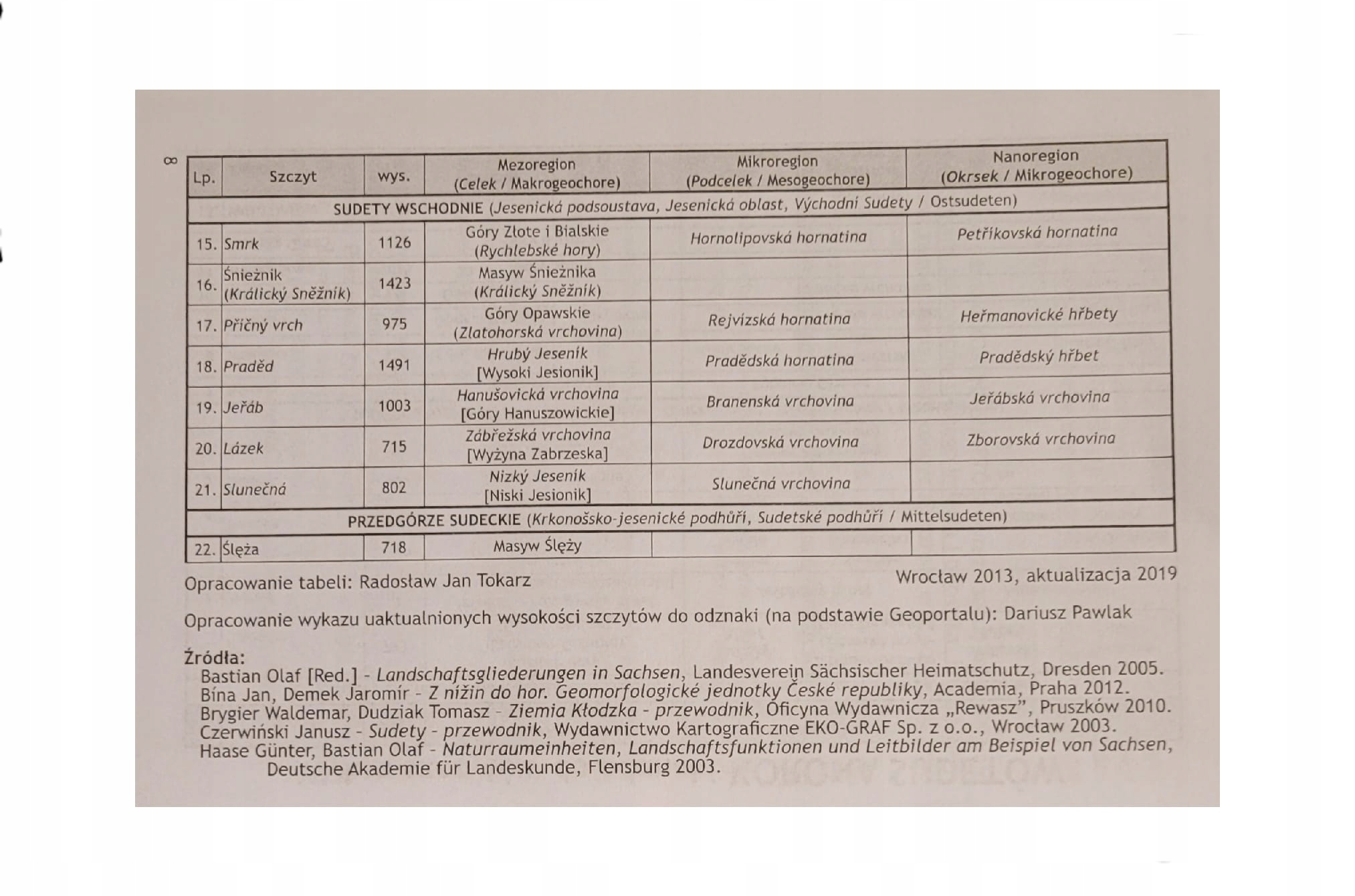 Ниже приведен список из 22 вершин для значка Судетской короны.