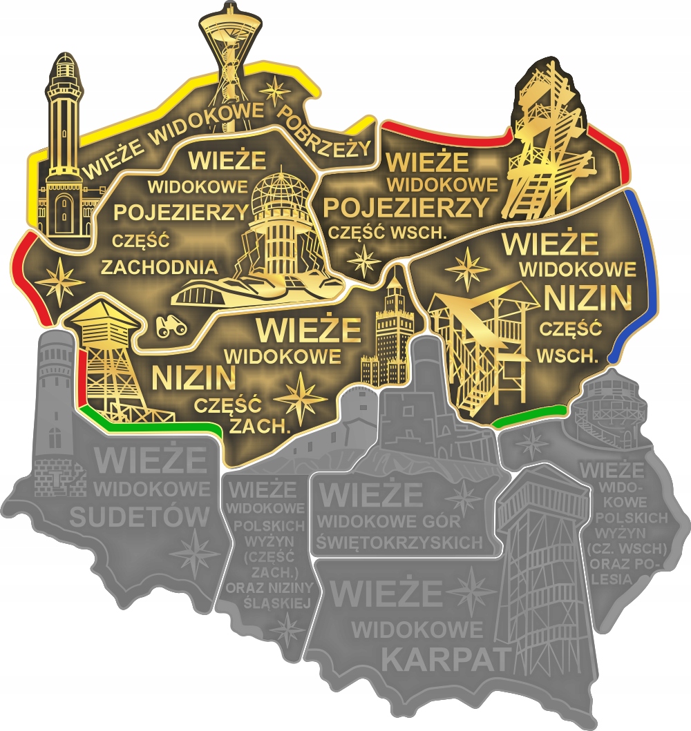 <ул>Это набор из пяти туристических значков.ПОЛЬСКИЕ НИЖНИЕ БАШНИ: