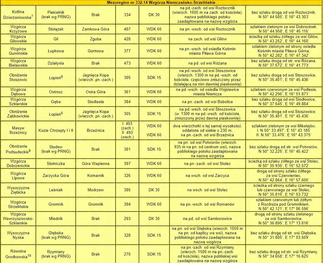 Буклет туристического бейджа «Доминанты предгорья Судет», учрежденного Комиссией по пешему туризму Вроцлавского филиала ПТТК в 2023 году. Исследование содержит список доминантов, которые встречаются в следующих мезорегионах: