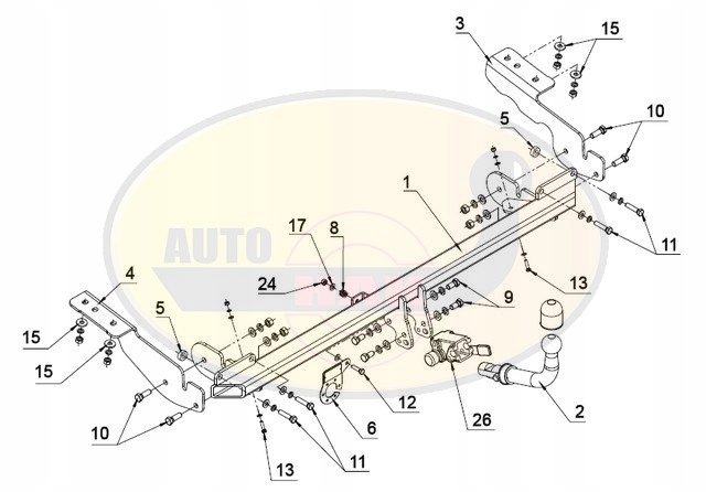 Комплект фаркопа с горизонтально отделяемой шаровой от крупнейшего и лучшего польского производителя AUTO-HAK, от единственного официального представителя бренда на Аллегро.