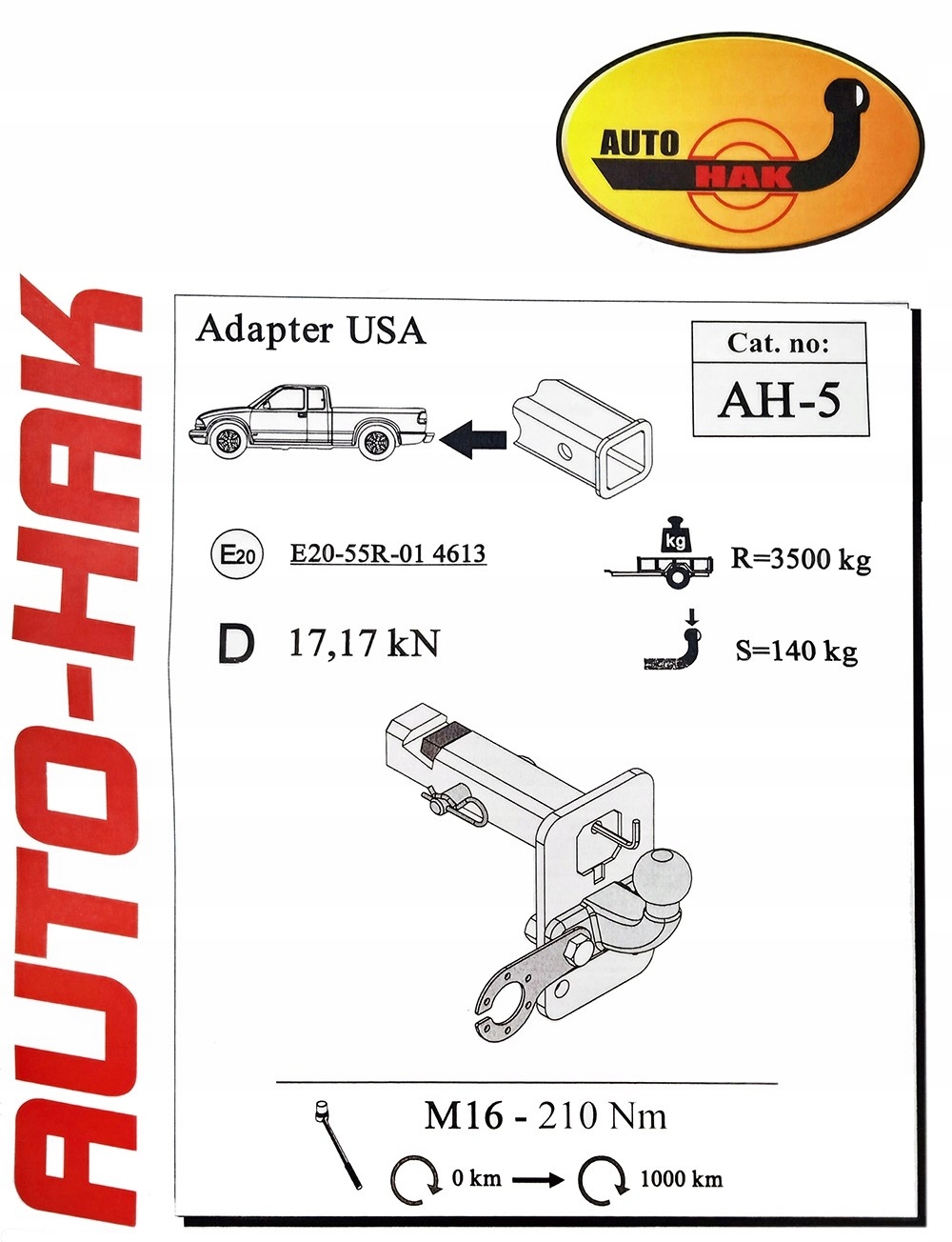 НОВЫЙ ОРИГИНАЛЬНЫЙ БРЕНД, РЕГУЛИРУЕМЫЙ НА ДВУХ Градусов ВЫСОТЫ, АДАПТЕР ДЛЯ АВТОМОБИЛЕЙ США AH-5 SŁUPSK С ВАРИАНТОМ ЗАЗОРА ОТ AUTO-HAK SŁUPSK