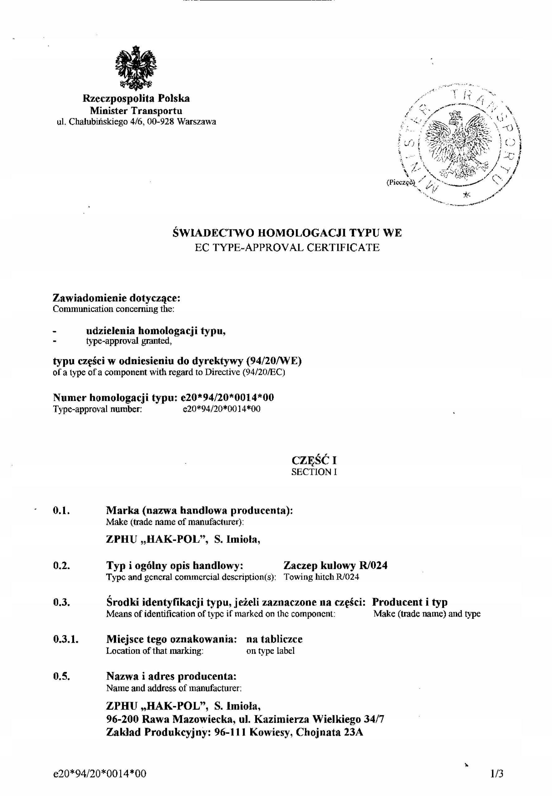 НОВЫЙ КОМПЛЕКТНЫЙ БУКСИРОВОЧНЫЙ КРЮК ОТ ПОЛЬСКОГО ПРОИЗВОДИТЕЛЯ HAK-POL IMIOŁA
