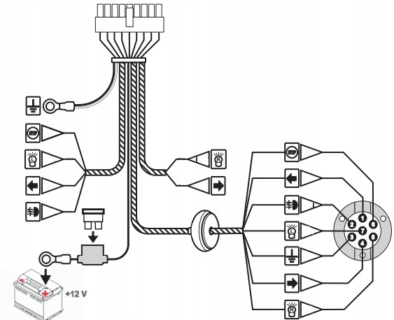 УНИВЕРСАЛЬНЫЙ 7-контактный ЭЛЕКТРИЧЕСКИЙ МОДУЛЬ С КРЮКОМ С ЭЛЕКТРИЧЕСКИМ ЖГУТОМ