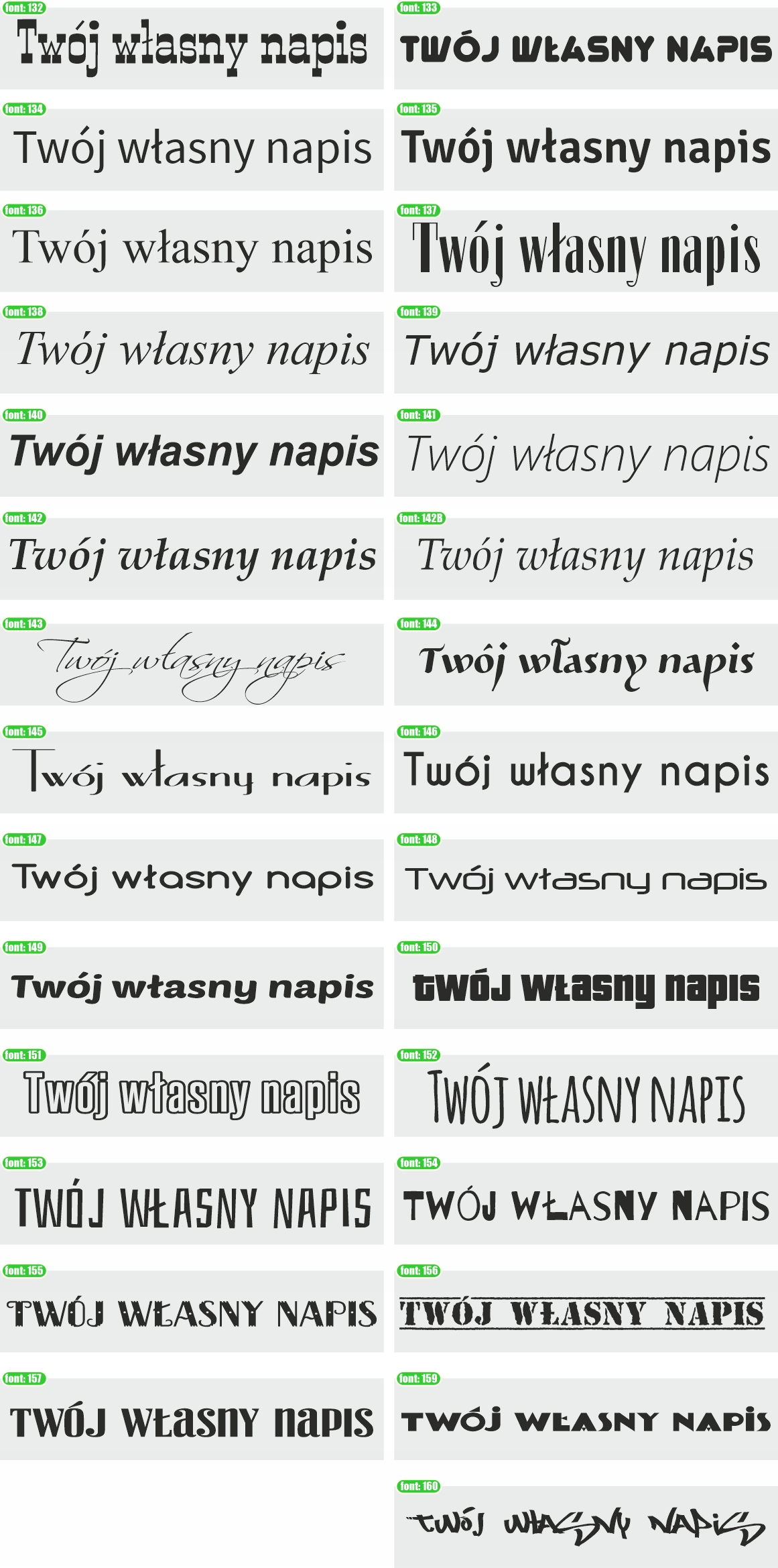 Несколько десятков цветов и шрифтов на выбор.