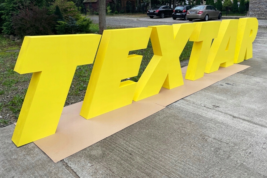 Буквы изготовлены из 15/20 см премиум -полистирола, что делает их легкими и удобными для транспортировки и сборки. Фронты букв обычно изготавливаются из ПВХ, но также можно преобразовать материал в пластик, например, от плексигласа.