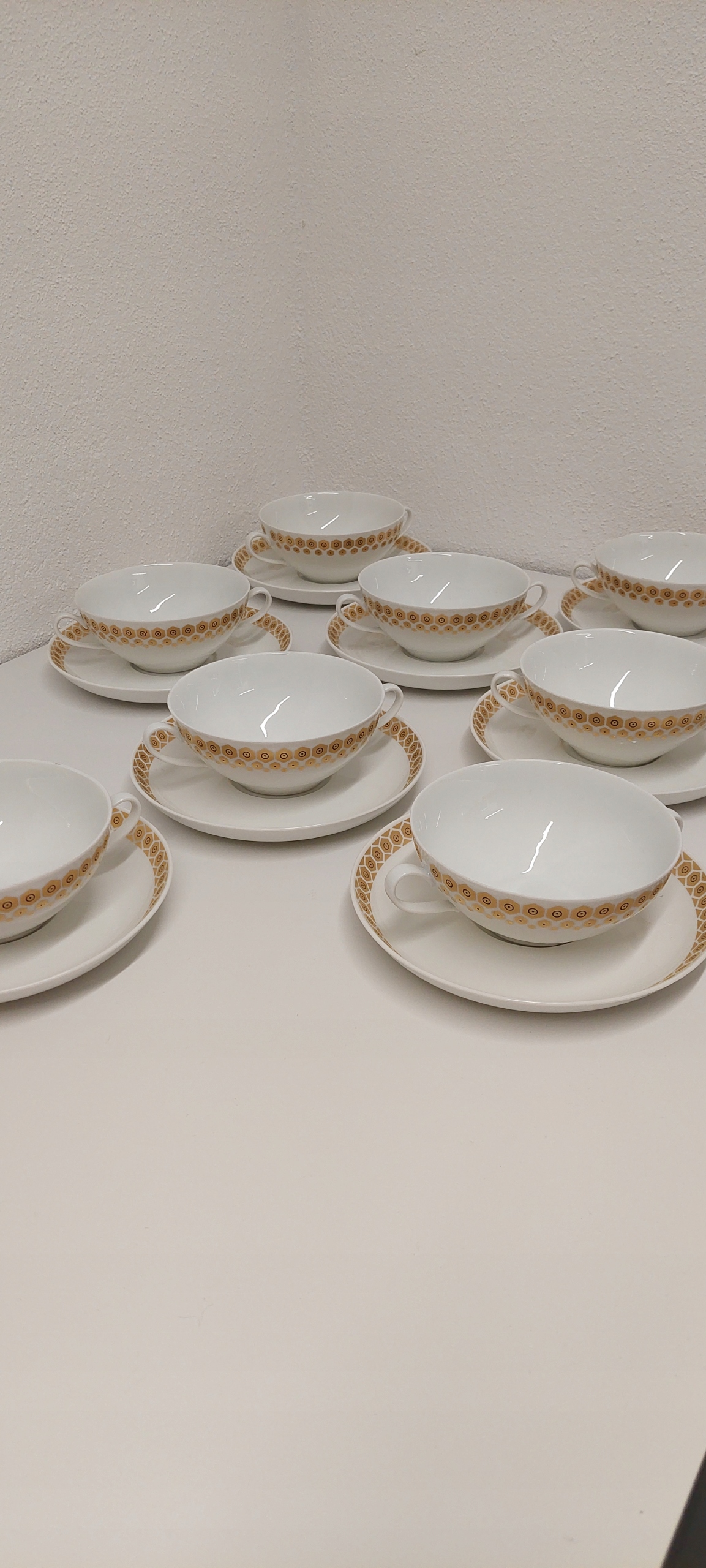 восемь бульонов в очень хорошем состоянии с размерами, высота 5 см, диаметр инфузии 12 см, диаметр пластины для 17 -сантиметровых слитков.