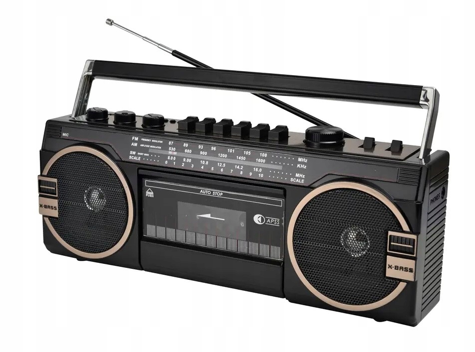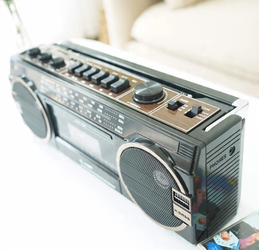 Классический кассетный магнитофон в стиле 80-х надежно воспроизводит все аудиокассеты и впечатляет своей аутентичностью и простотой управления.