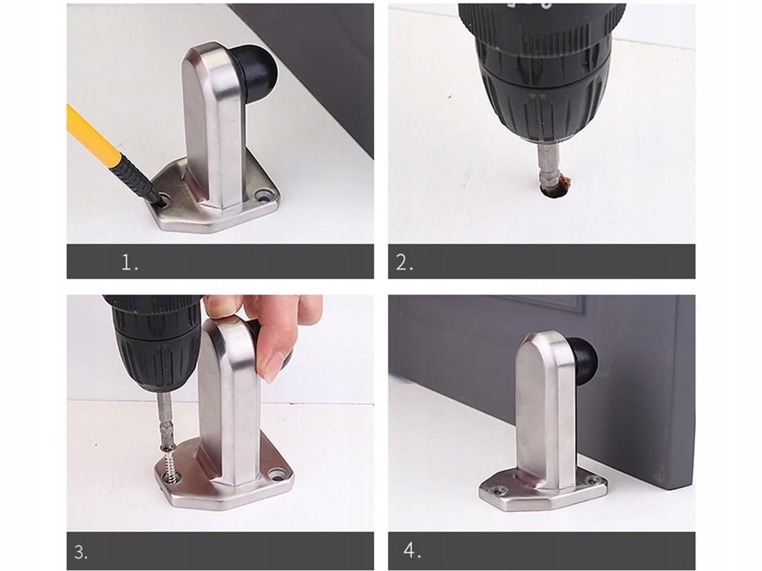 Дверной ограничитель можно легко и просто установить с помощью винтов, входящих в комплект