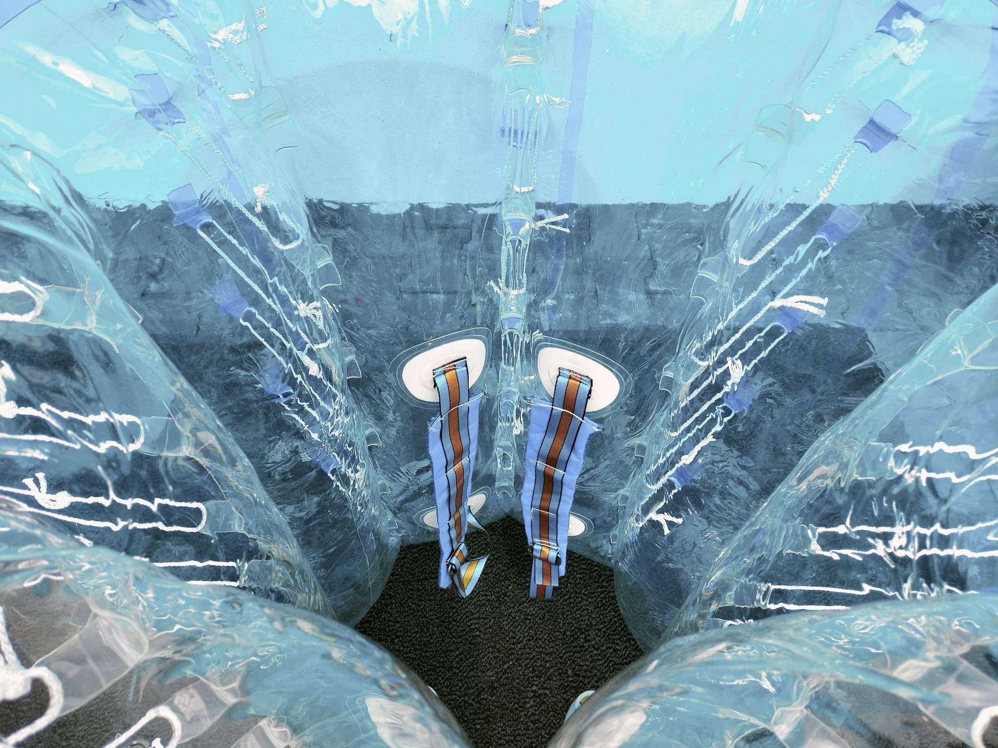 Внутри мяча находится регулируемый ремень безопасности, который удерживает играющего в мяче. Регулируемые ремни обеспечивают посадку и надежную фиксацию для людей разного роста, играющих в мяч.