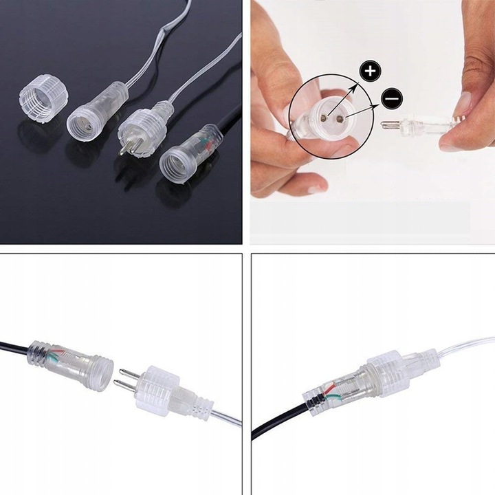 Каждый комплект оснащен герметичным 2-проводным удлинителем, позволяющим соединять комплекты, и герметичным программатором с одной функцией падающего снега.