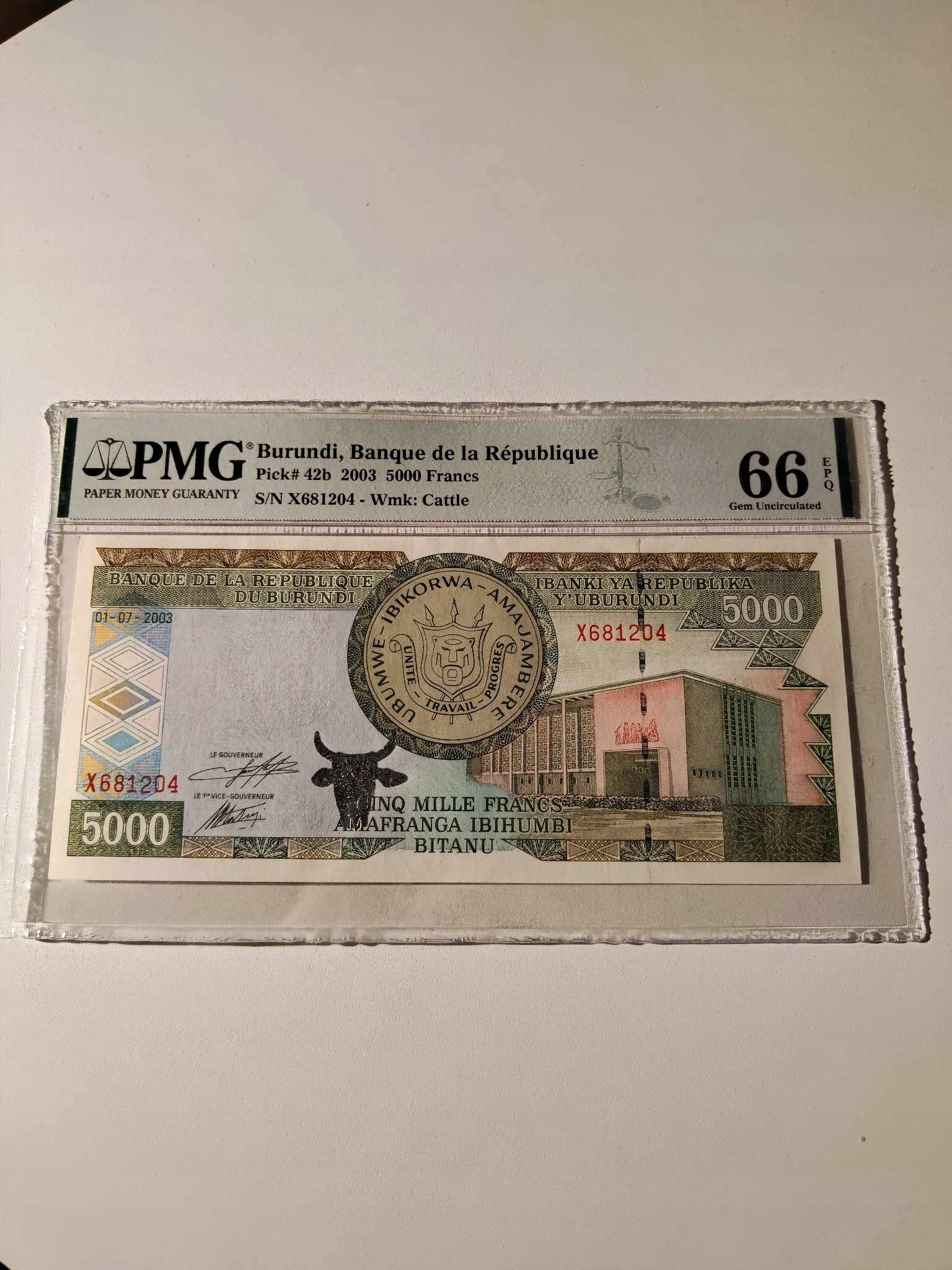 Покупая «Burundi - 5000 Franków - 2003 - PMG 66» данный товар из каталога «Бурунди» вы можете быть уверены, что после оформления заказа, доставки в Украину, вы получите именно то, что заказывали, в оговоренные сроки и европейского качества.