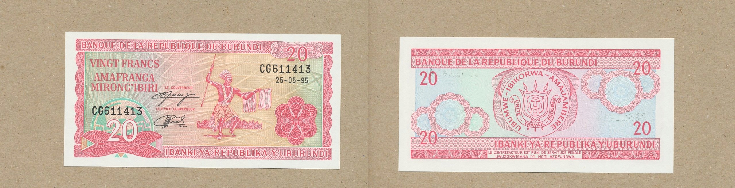 БУРУНДІ 20 ФРАНЦІВ 1995 ДУЖЕ РІДКІСНИЙ UNC