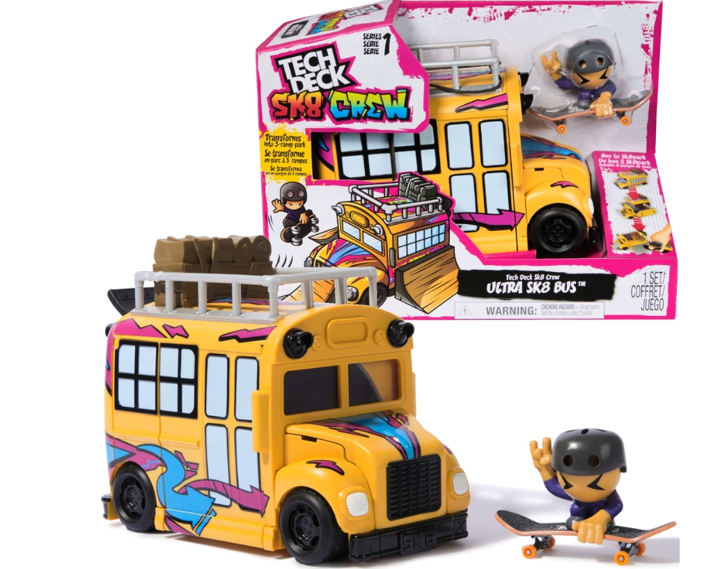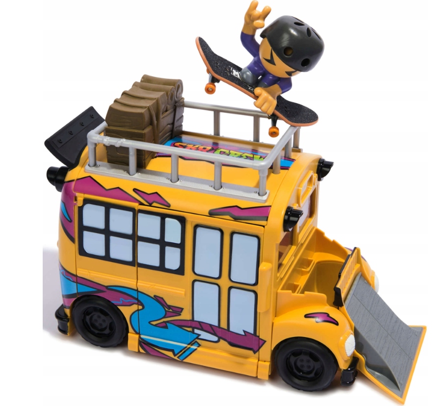 Набор состоит из желтого автобуса, который раскладывается в трех местах, что позволяет вам ездить по прикрепленным пандусам. У него также есть колеса, которые позволяют ему имитировать настоящий автобус. Однако входящие в комплект скейтборд и фигурка доставят массу удовольствия. Велосипед позволит вам отрабатывать практически неограниченное количество трюков на скейтборде, который находится у вас в руке. Дополнительно они тренируют координацию наших пальцев. Набор подарит много часов веселья, а освоение новых трюков побудит вас продолжать играть и соревноваться с друзьями.