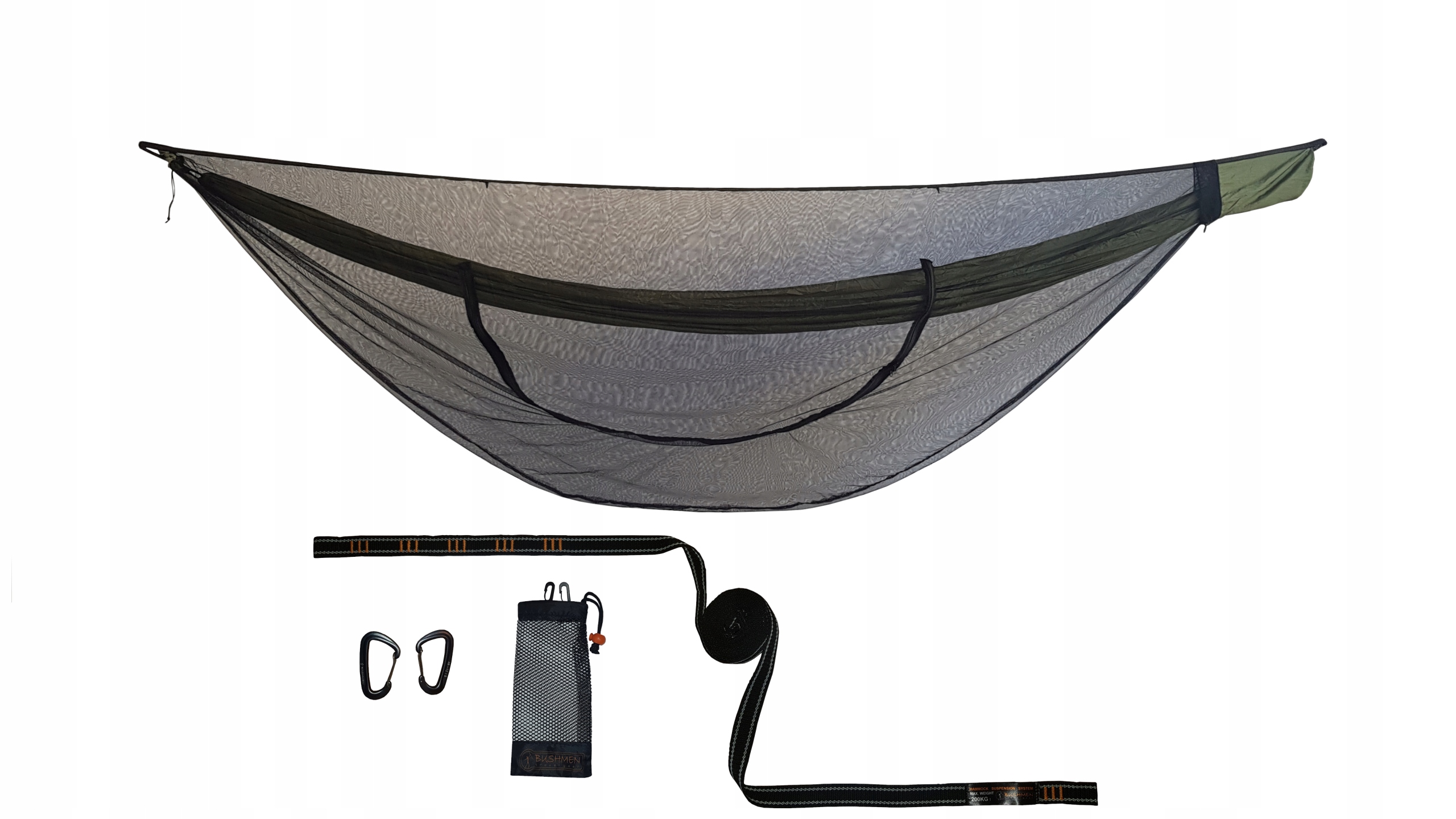 В этом комплекте мы использовали длинный гамак длиной до 3,3 м и проверенные решения от нашей компании ДЖУНГЛ. противомоскитная сетка для гамака: