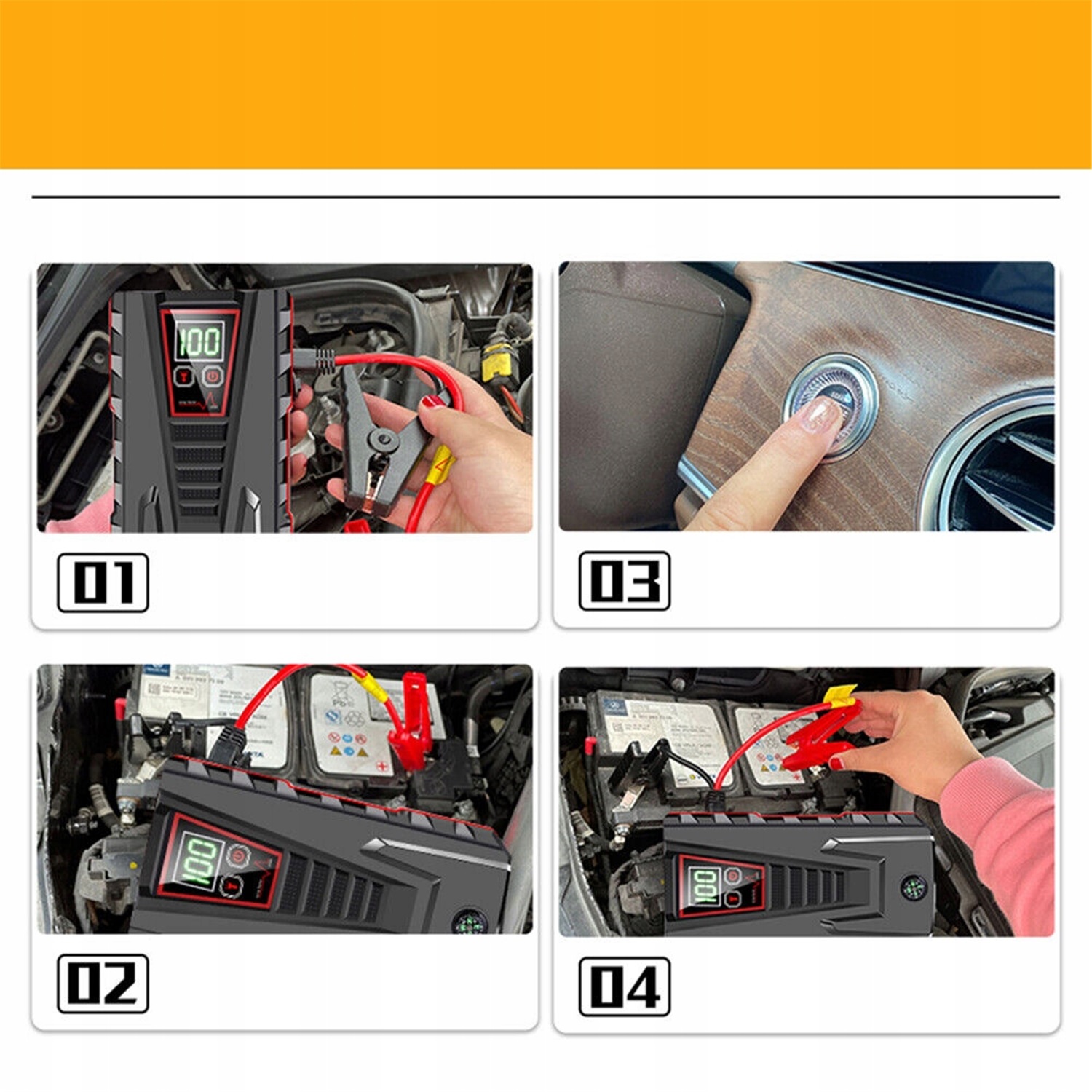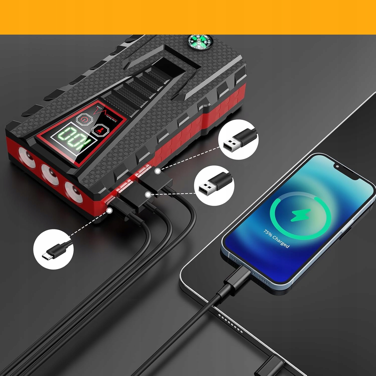 🚗 Многофункциональное автомобильное аккумуляторное устройство: Этот автомобильный усилитель представляет собой не только автомобильный аккумулятор, но и портативное зарядное устройство емкостью 99800 мАч! Он имеет два выходных порта USB 3.0. С помощью этого автомобильного стартера аккумулятора вы сможете быстро зарядить два устройства одновременно: мобильный телефон, планшет, фотоаппарат и многие другие. Многофункциональный портативный автомобильный стартер поможет решить проблемы с зарядкой в любое время и в любом месте.