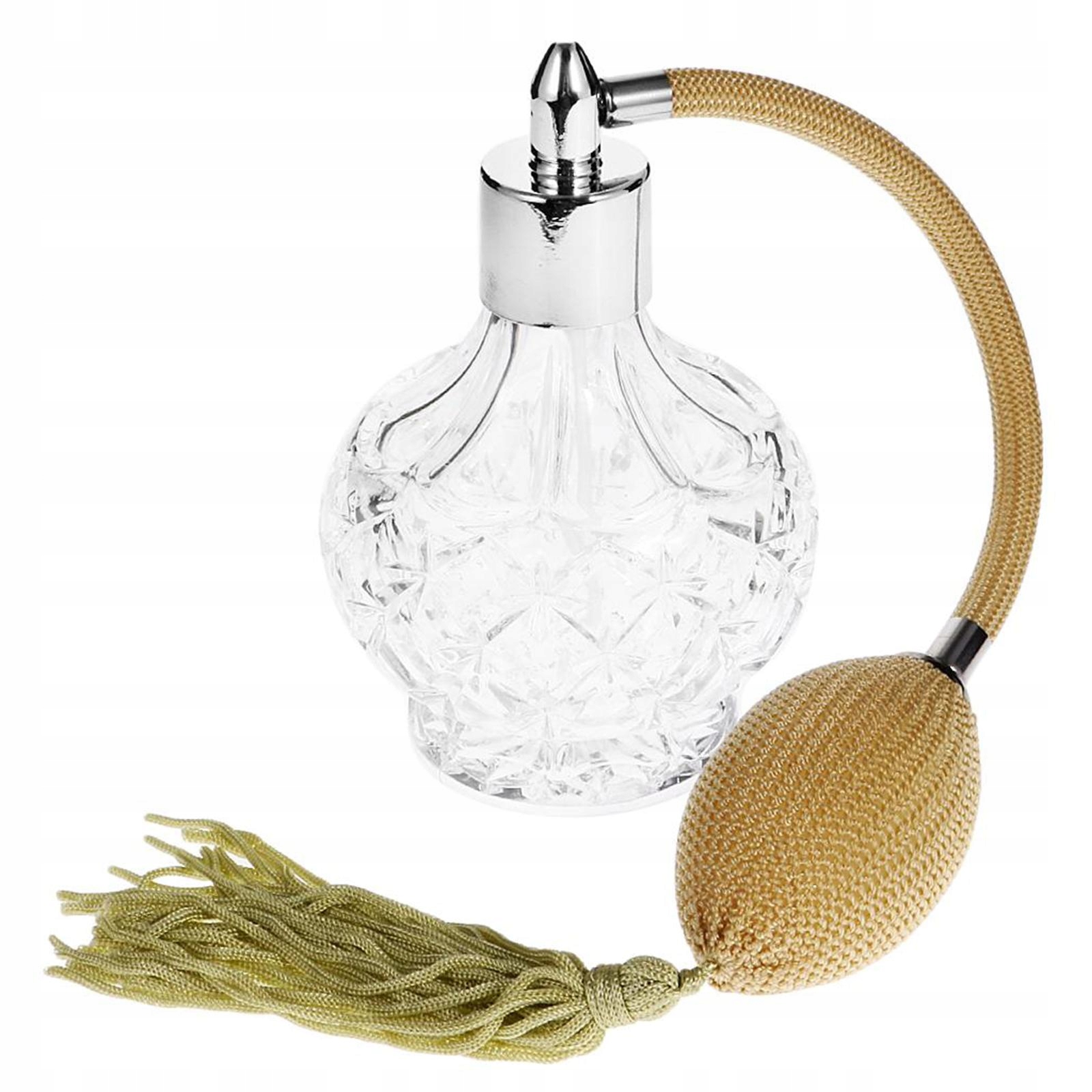 Butelka z rozpylaczem do perfum w stylu vintage z żarówką. Klasyczny rozpylacz w kolorze żółtym