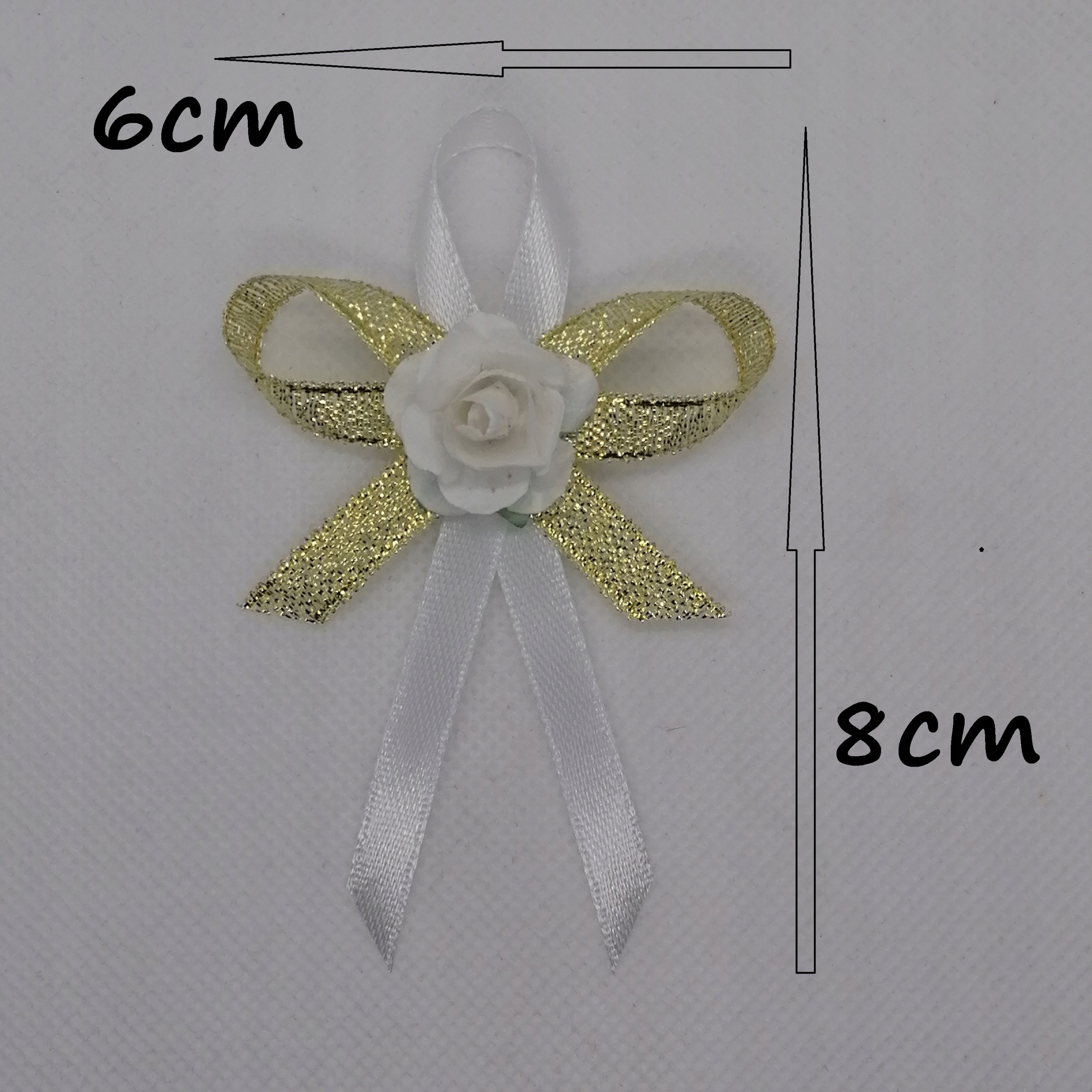 Булавки изготовлены вручную с заботой и вниманием к деталям. Их размер 8 см/6 см. Использовалась лента толщиной 0,6 мм. На каждой булавке есть цветок из белой бумаги. К каждой булавке прикрепляется