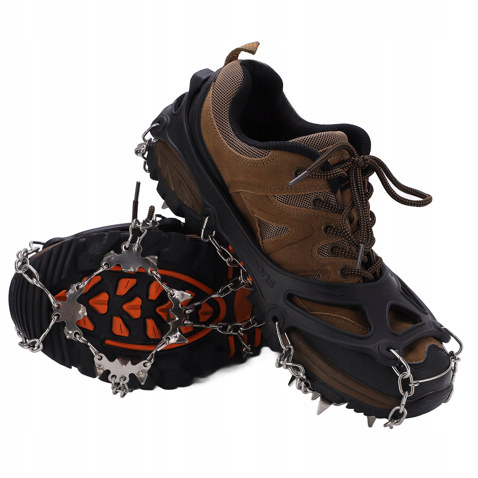 Ботинки для ботинок с ледяной тягой, кошки, снежные захваты с 19 шипами, сумка для хранения для пеших прогулок, альпинизмаXL