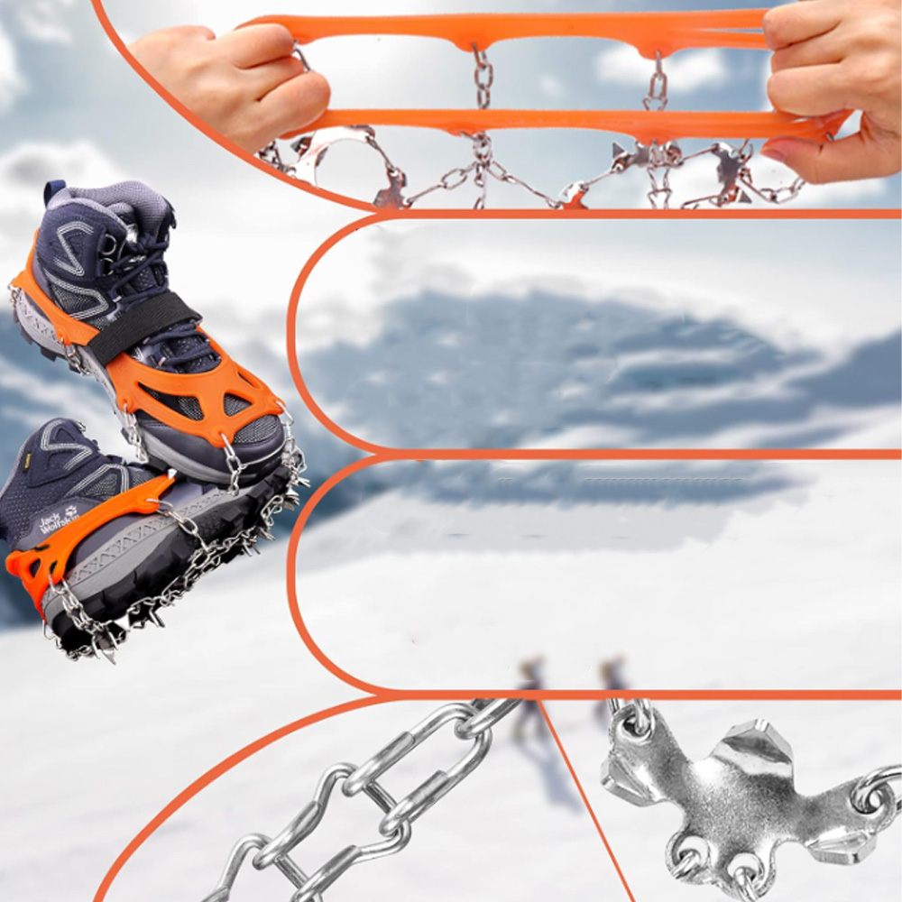 ❄【Более прочные и безопасные шипы】 Кошки для обуви из высокопрочной нержавеющей стали с 19 зубьями. Шипы и конструкция двойной цепи делают их более долговечными и прочными и не ржавеют. Эти ледяные лозы обеспечивают отличное сцепление с различными дорожными поверхностями и снижают риск получения травм в результате падения или скольжения, всегда обеспечивая безопасность и защиту от травм.