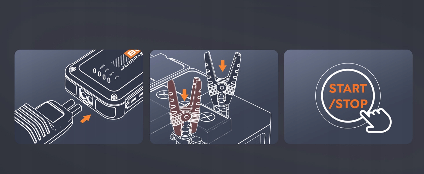 мощный стартовый стартер 3000A Car - благодаря 3000 -такому току зазора, и этот автомобиль Power может запустить автомобиль через несколько секунд, даже при температуре от -20 ° C до 60 ° C. Это эффективный и компактный мобильный источник питания.