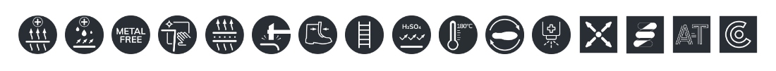 - Подошва:Пу/Резина - лестничная подошва, технология ANA - TECH (увеличенная пяточная поверхность в подошве), технология SELF CLEAN (самоочищающаяся подошва), технология PRT FLEX, технология SHOCK ABSORBER, кислотостойкая подошва, устойчивость к кратковременному контакту с температурой 180°C li>