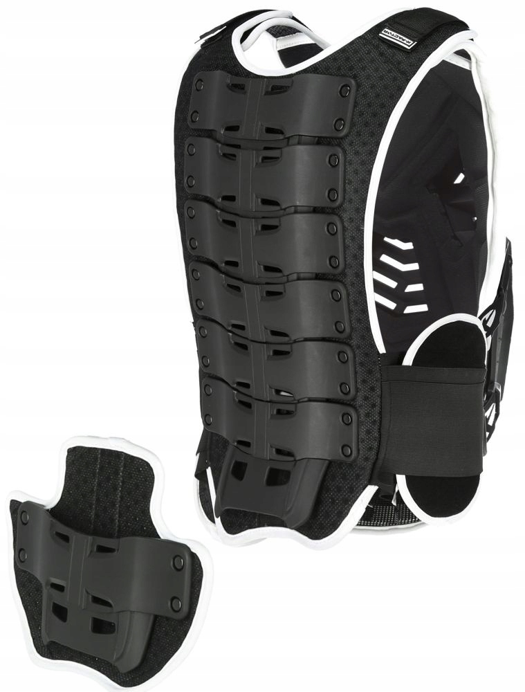 - Дополнительный стабилизатор, соединяющий защиту груди с защитой спины.