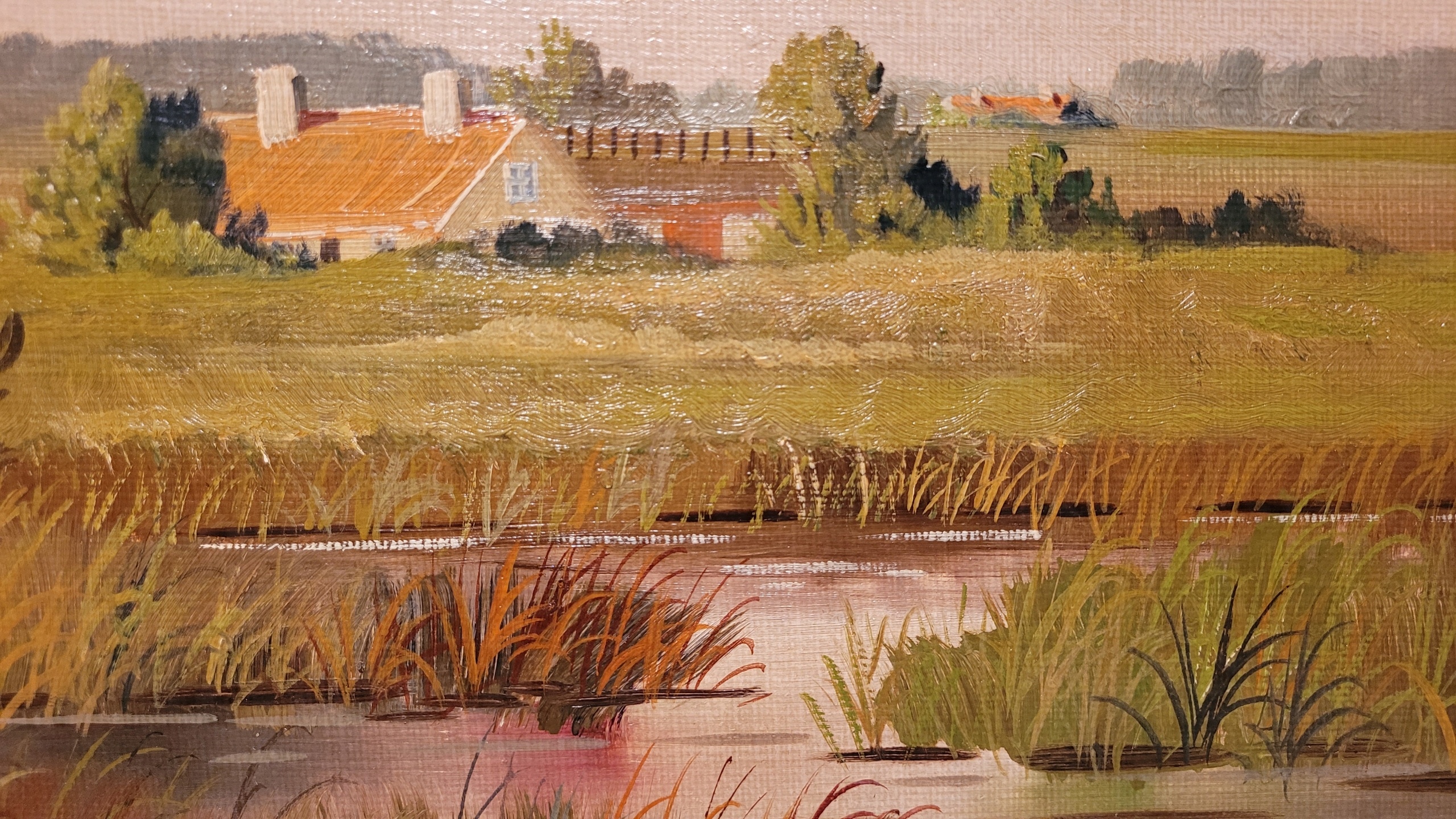 Предмет продажи — красивая, старинная картина маслом " Деревенский пейзаж с мокрым".